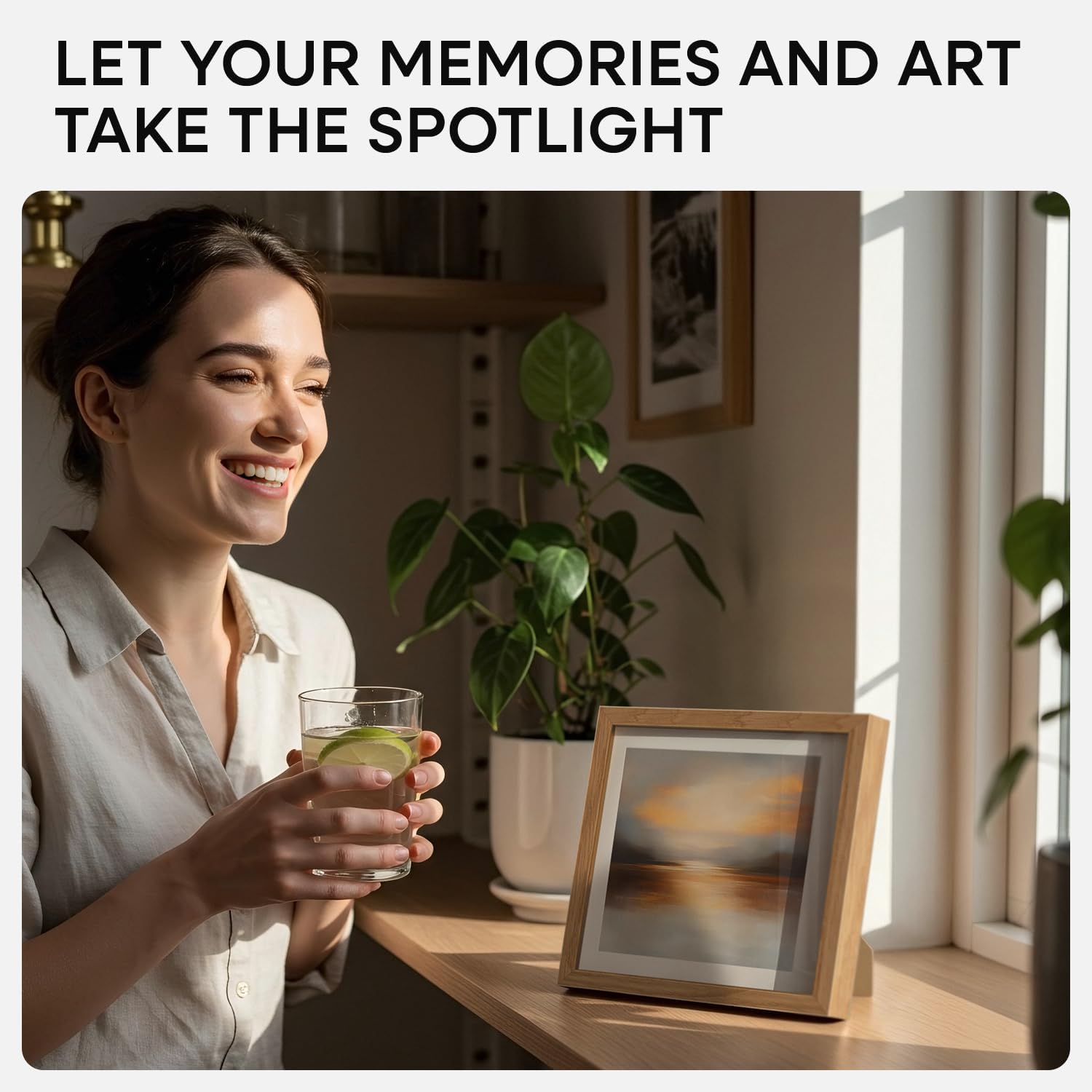 - LUXURY TEXTURE, NEVER LAMINATE Crafted from real oak with subtle grain and a matte finish, this frame delivers an upscale gallery look—not a mass-produced feel.