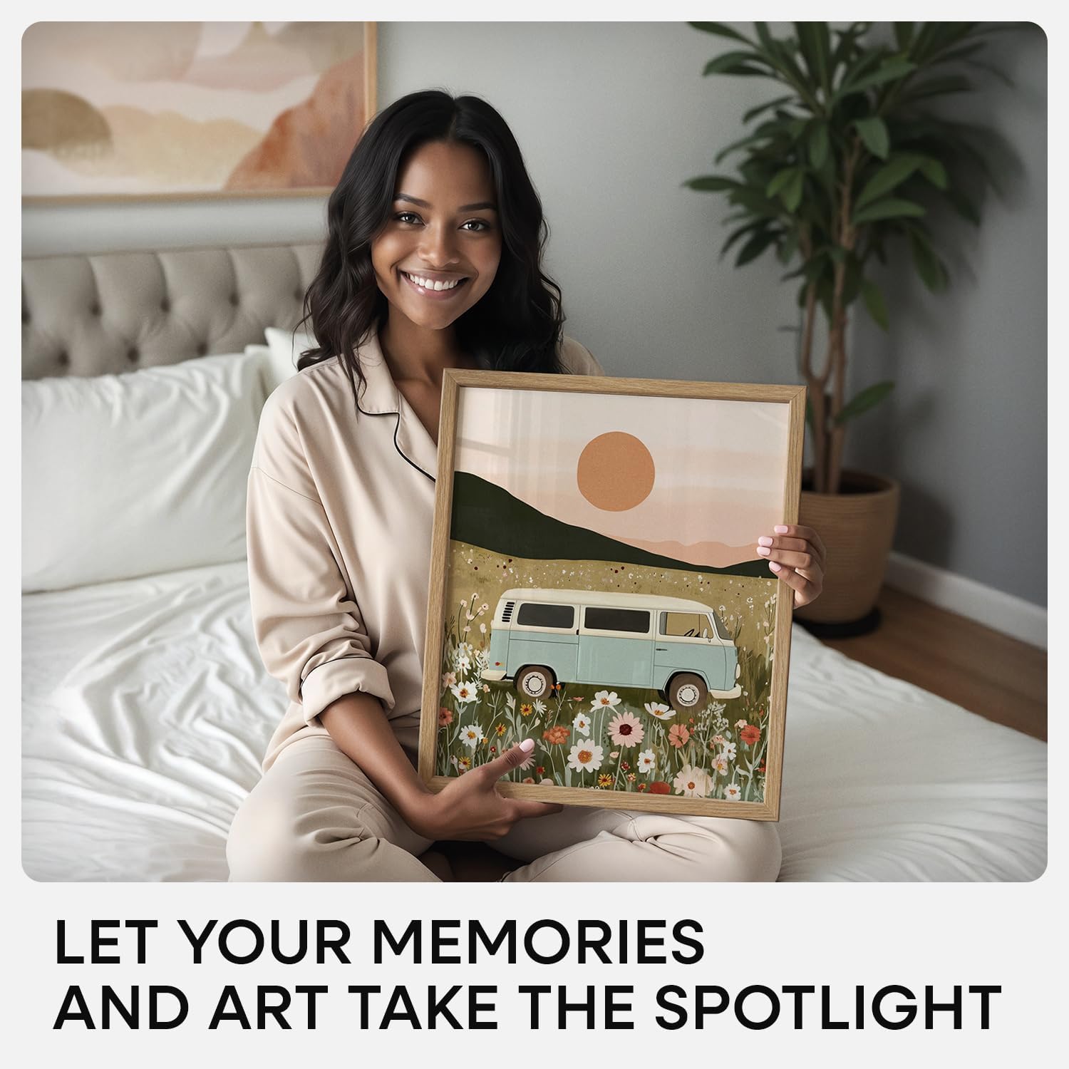 - LUXURY TEXTURE, NEVER LAMINATE Crafted from real oak with subtle grain and a matte finish, this frame delivers an upscale gallery look—not a mass-produced feel.
