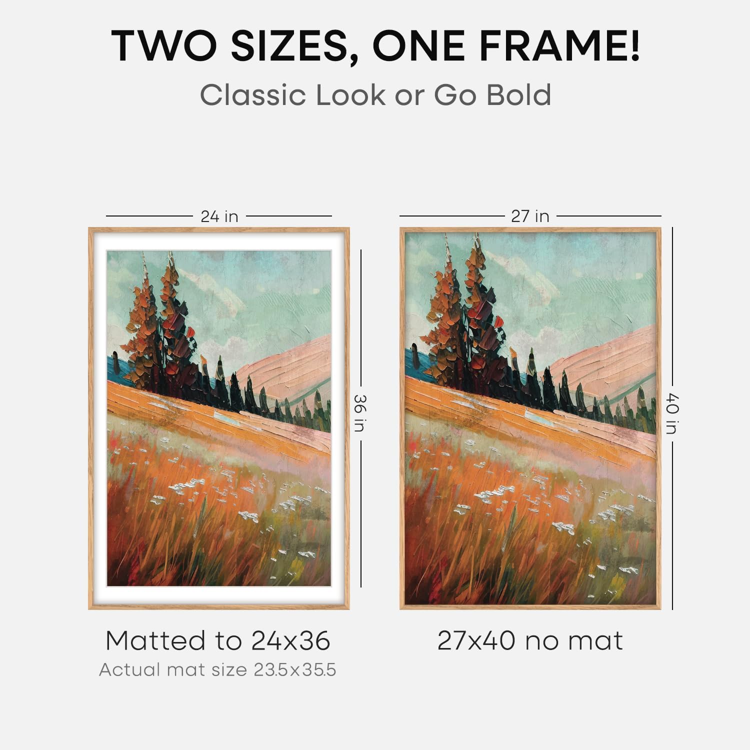 - MATTED OR EDGE-TO-EDGE—YOUR CALL. A crisp 24x36 white mat creates negative space, elevating your image with gallery precision. Or remove it for 27x40 bold, uninterrupted impact.