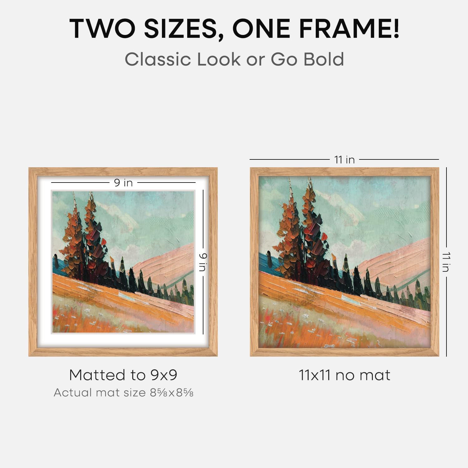 Homeforia 11x11 Picture Frame Wood, High-End Natural Oak 11 x 11 Thin Square Poster Frames with Mat 9 by 9 inch Photo, 11by11 Light Wooden Frame Matted to 9x9 Print, Tempered Glass, Wall Kit, Set of 1