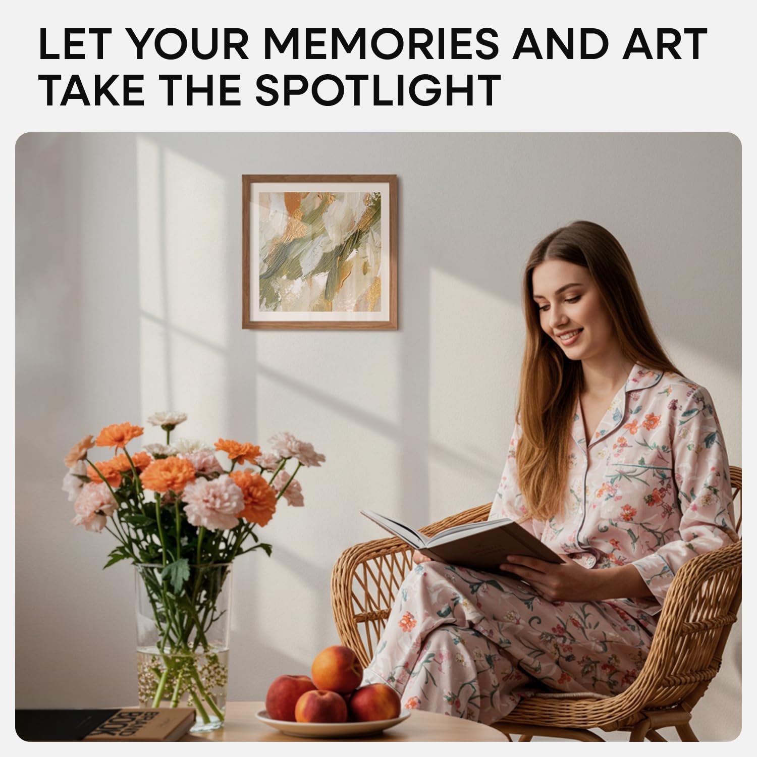 - LUXURY TEXTURE, NEVER LAMINATE Crafted from real oak with subtle grain and a matte finish, this frame delivers an upscale gallery look—not a mass-produced feel.