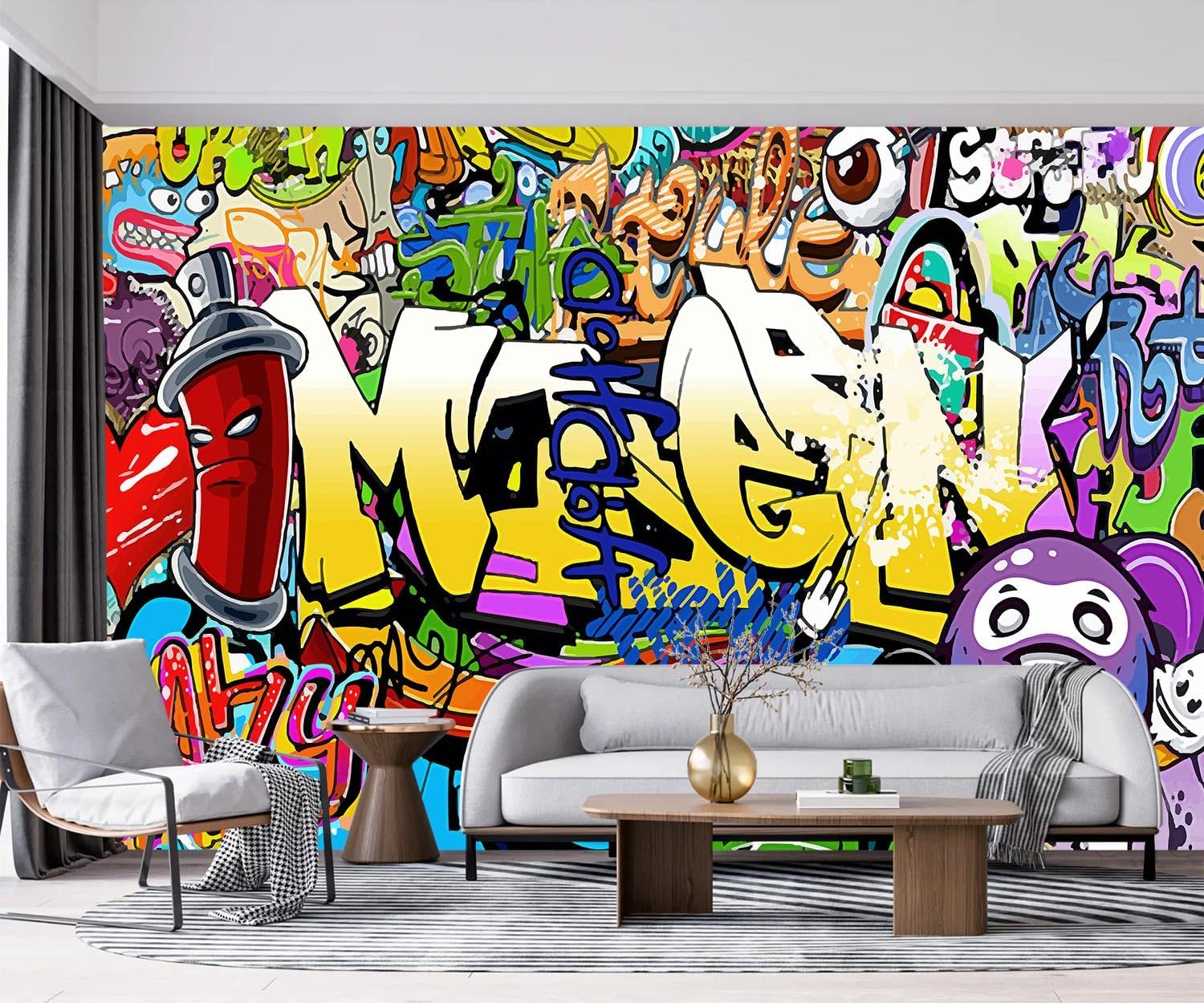 -Nursery Color Graffiti Abstract Letters Bedroom Wallpaper XT16 S 100" x 65"
