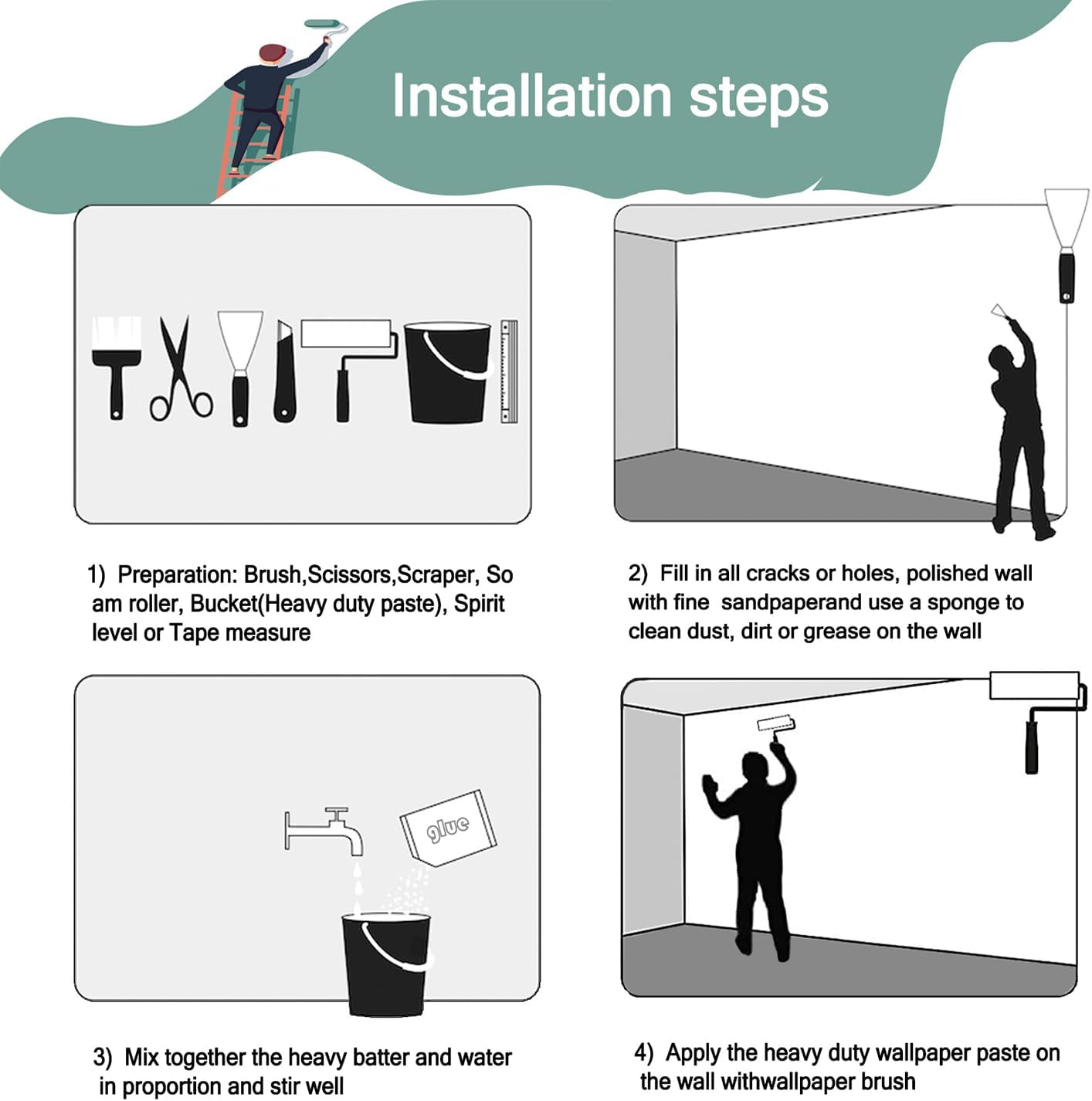 - Matters Need Attention:Our wall mural is not self-adhesive or peel and stick.You need to buy their own tools and heavy wallpaper adhesive, otherwise it can not be used