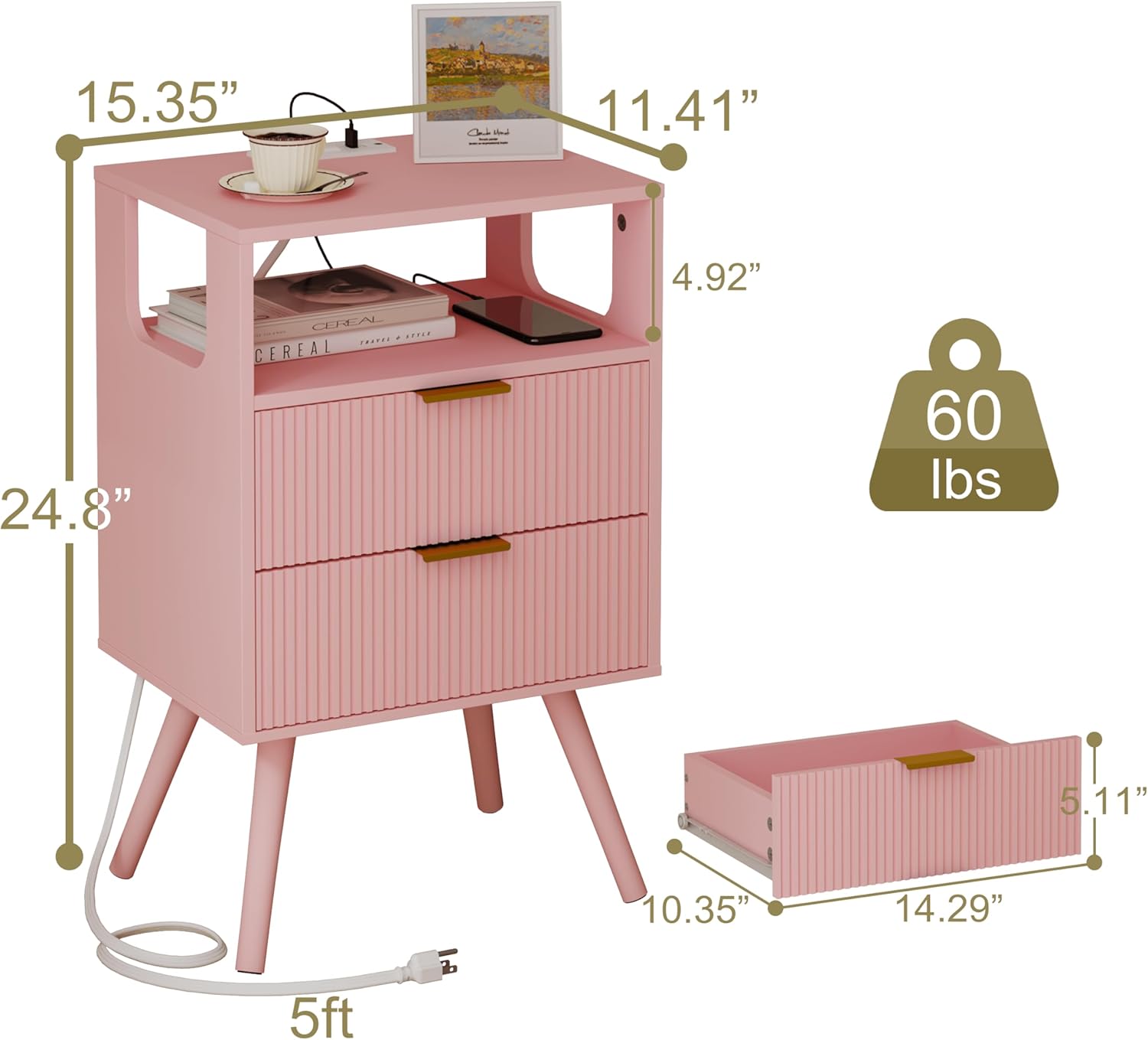 - Embrace the modern touch: A classic pink vertically textured faucet, this nightstand gives off a modern touch in your bedroom. With a row insert makes it more practical, the atmosphere lamp is a good addition to the fun of life, it can also be used as a side table or coffee table for the whole family to attract attention, adding elegance to family life.