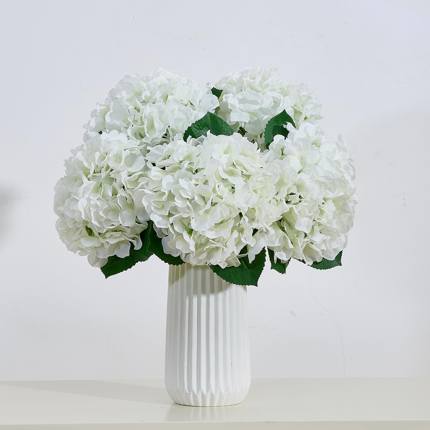 8Pcs White Fake Flowers Silk Hydrangea Artificial Flowers Bouquets Faux Ivory Hydrangea Stems for Home Table Centerpieces Wedding Party Decoration