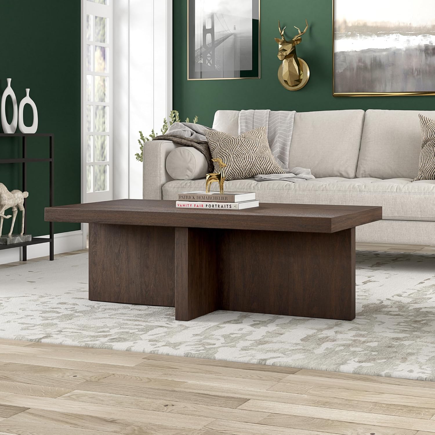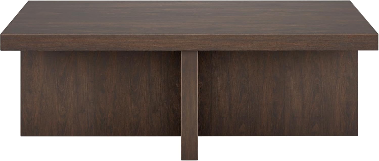 Henn&Hart 44" Rectangular Wood Pedestal Low-Profile Coffee Table for Living Room, Family Room, or Office, Alder Brown