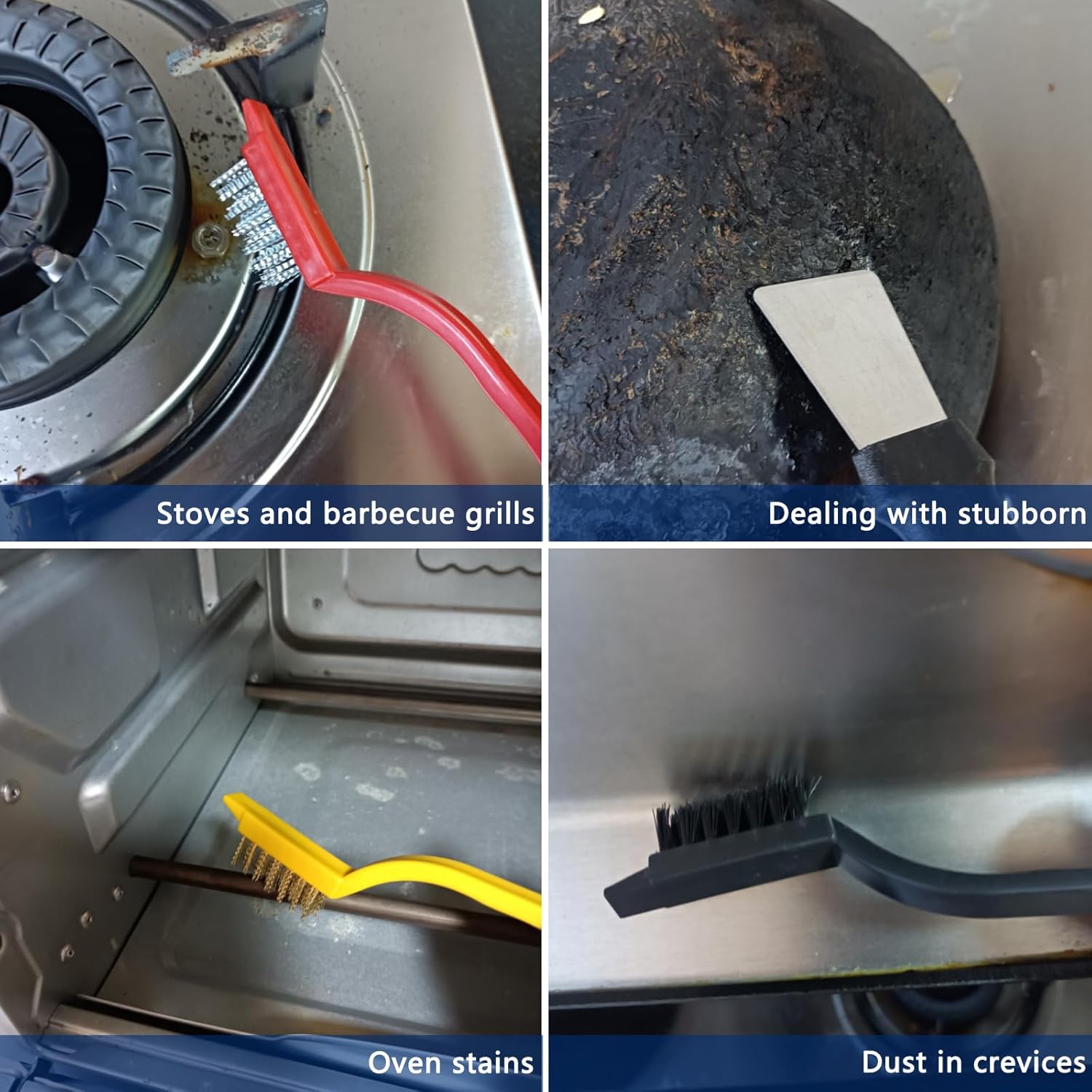 - Best cleaning set: 14 piece crevice brush set, sufficient quantity. This cleaning brush kit includes 2 hard bristle crevice brushes, 1 scraper for removing stubborn stains, 3 handheld crevice cleaning brushes, 2 2-in-1 function door and window slot cleaning brushes, 1 right angle brush for cleaning mixers or bottles, 3 wire crevice brushes for difficult tasks, 2 household appliance and keyboard brushes. This multifunctional cleaning kit can meet various cleaning needs and clean various difficult to clean areas in the home