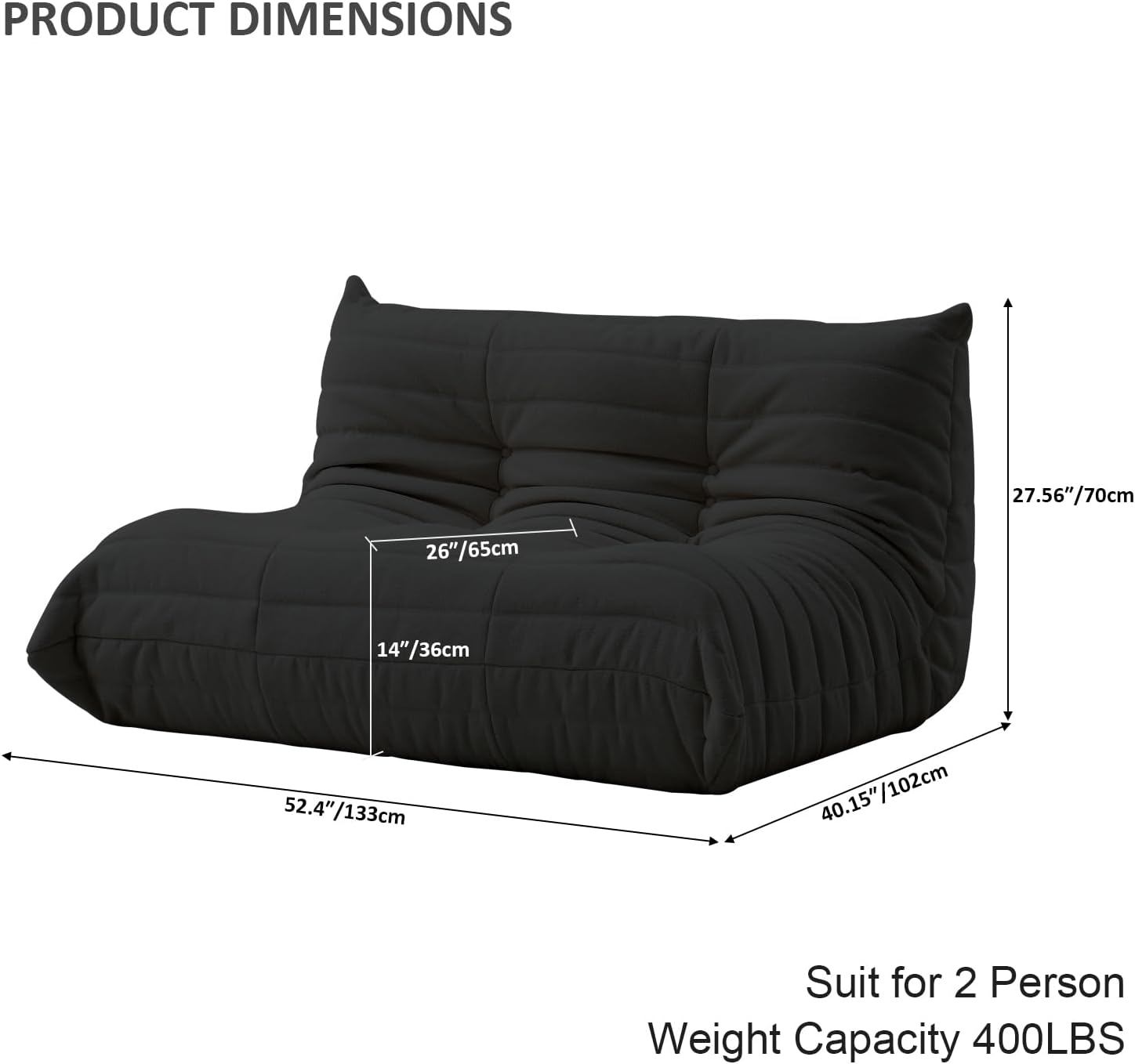 Luxury Sofa Couch Chair, Lazy Floor Seating, Fireside Bean Bag Chair, Ergonomic Tatami Sofa Lounger for Living Room, Bedroom, Office, Loveseat, Black
