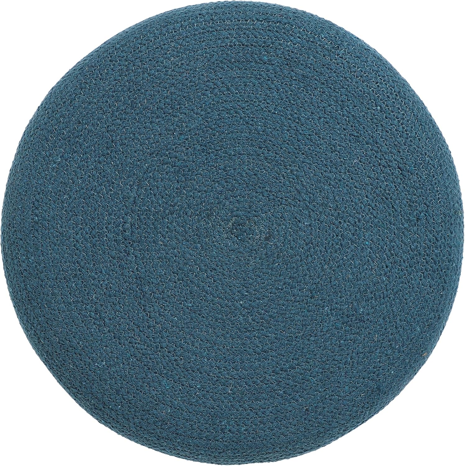 REDEARTH · Cylindrical Pouf Foot Stool Ottoman - Jute Braided Pouffe Poof Accent Sitting Footrest for Living Room, Bedroom, Nursery, Patio, Lounge & Other Rooms (Teal Natural, 18"x18"x14")