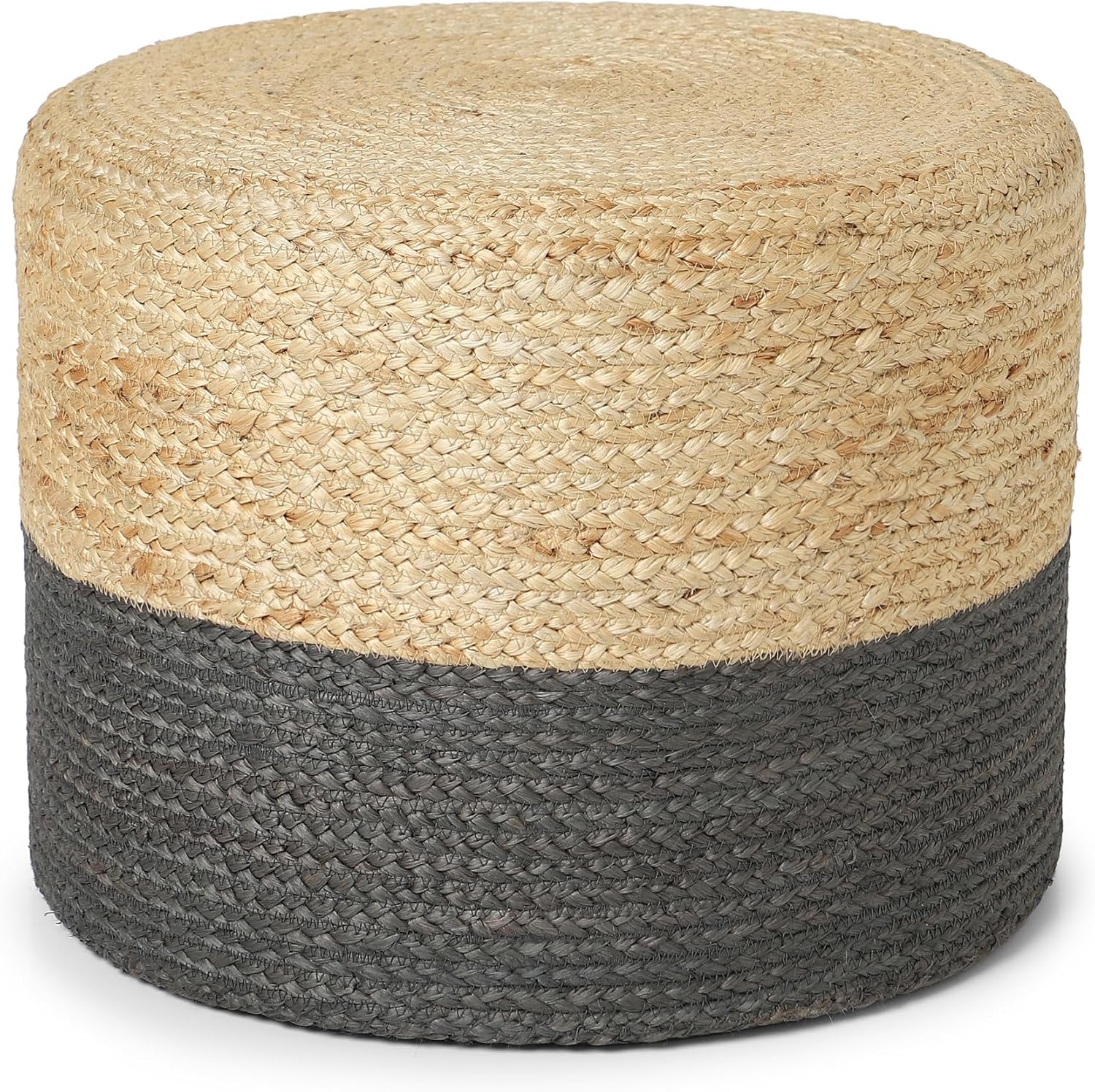 REDEARTH · Cylindrical Pouf Foot Stool Ottoman - Jute Braided Pouffe Poof Accent Sitting Footrest for Living Room, Bedroom, Nursery, Patio, Lounge & Other Rooms (Natural Gray, 18"x18"x14")
