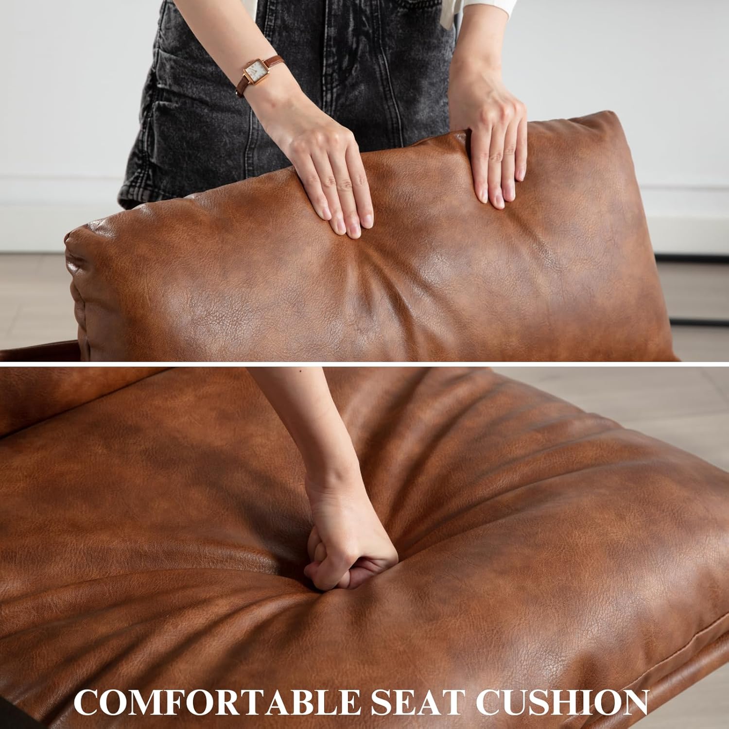 - High Quality Cushions : Covered in PU leather fabric, the densely padded foam cushions make this chair ideal for rest and relaxation. Whether you're hosting friends, reading, or watching TV, this series offers superior comfort.