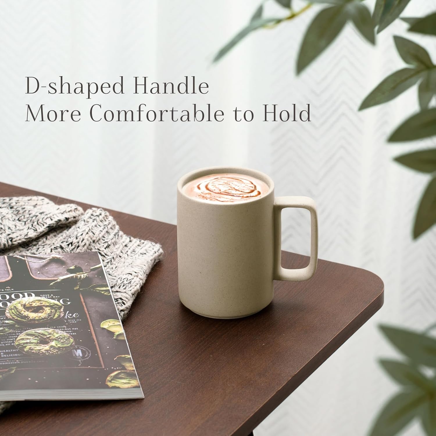 - Large D-shaped Handle: Simple and beautifully balanced. Enjoy your favorite coffee anywhere, anytime. Large D-shaped handle for a comfortable fit