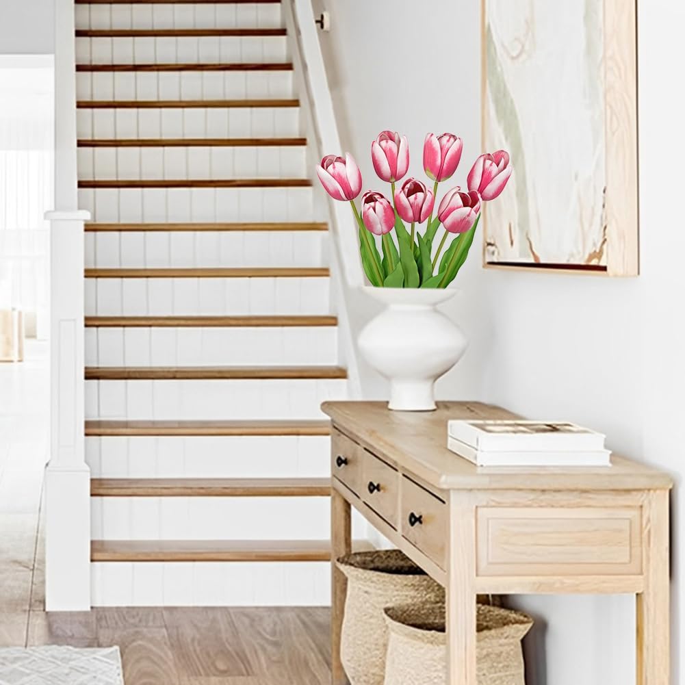 - LONG-LASTING, FADE-RESISTANT & EASY TO MAINTAIN: Made from high-quality, flexible PU material, these artificial tulip flowers maintain their realistic texture and vibrant color for years. Unlike fresh flowers, they require no watering, wilting, or upkeep, making them an effortless choice for home, office, or event decor