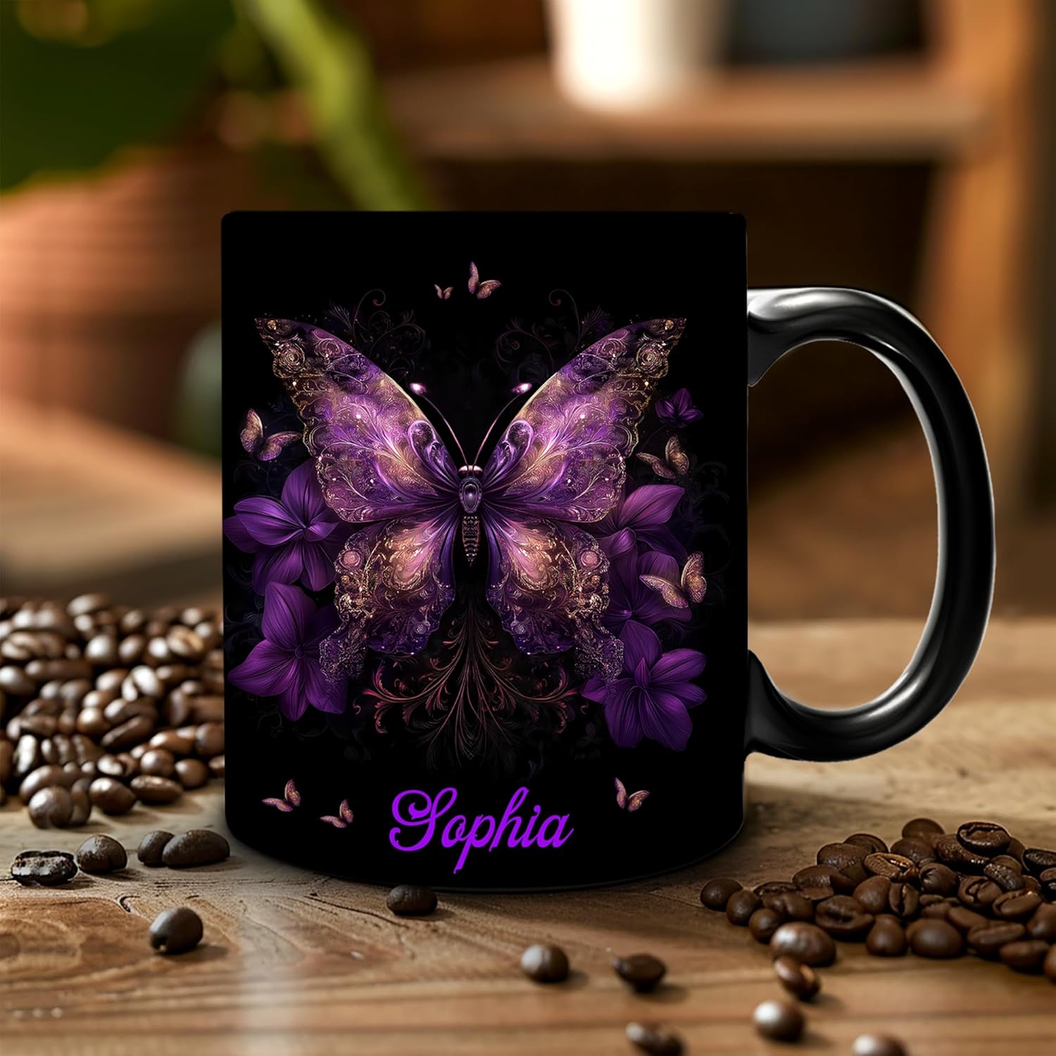 Hyturtle Personalized Purple Butterfly Mug - Butterfly Gifts For Women Lovers - Animal Gift For Bird Lover Her - Bird Gifts For Mom on Mother Day - Custom Name Coffee Cup Ceramic Mug 11 Oz 15 Oz