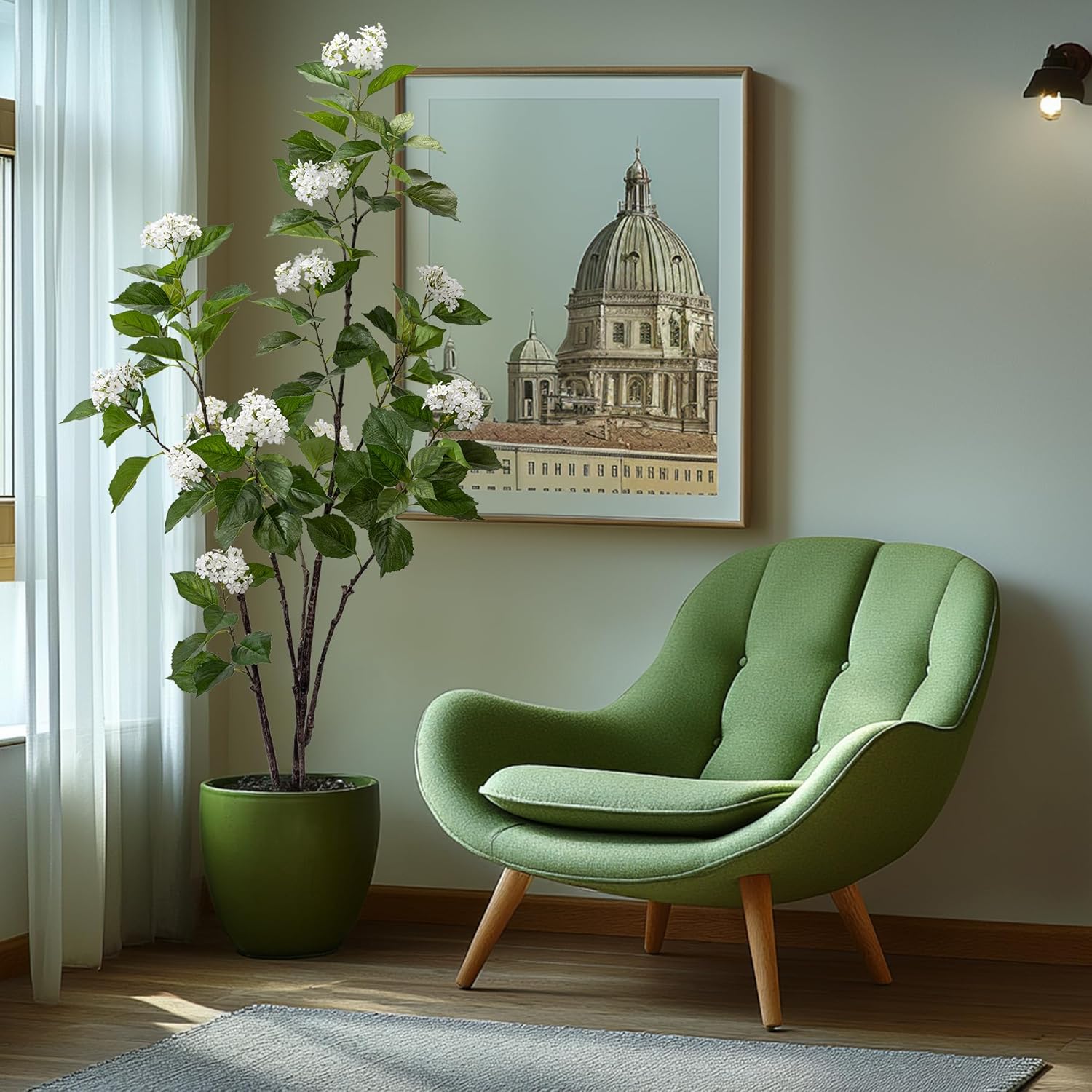 Fake Plants Home Decor Artificial Plants Outdoor Hydrangea Artificial Plants Indoor Fake Tree Living Room Decor Artificial Tree Porch Decor Fiddle Leaf Fig Tree 6Ft (White)