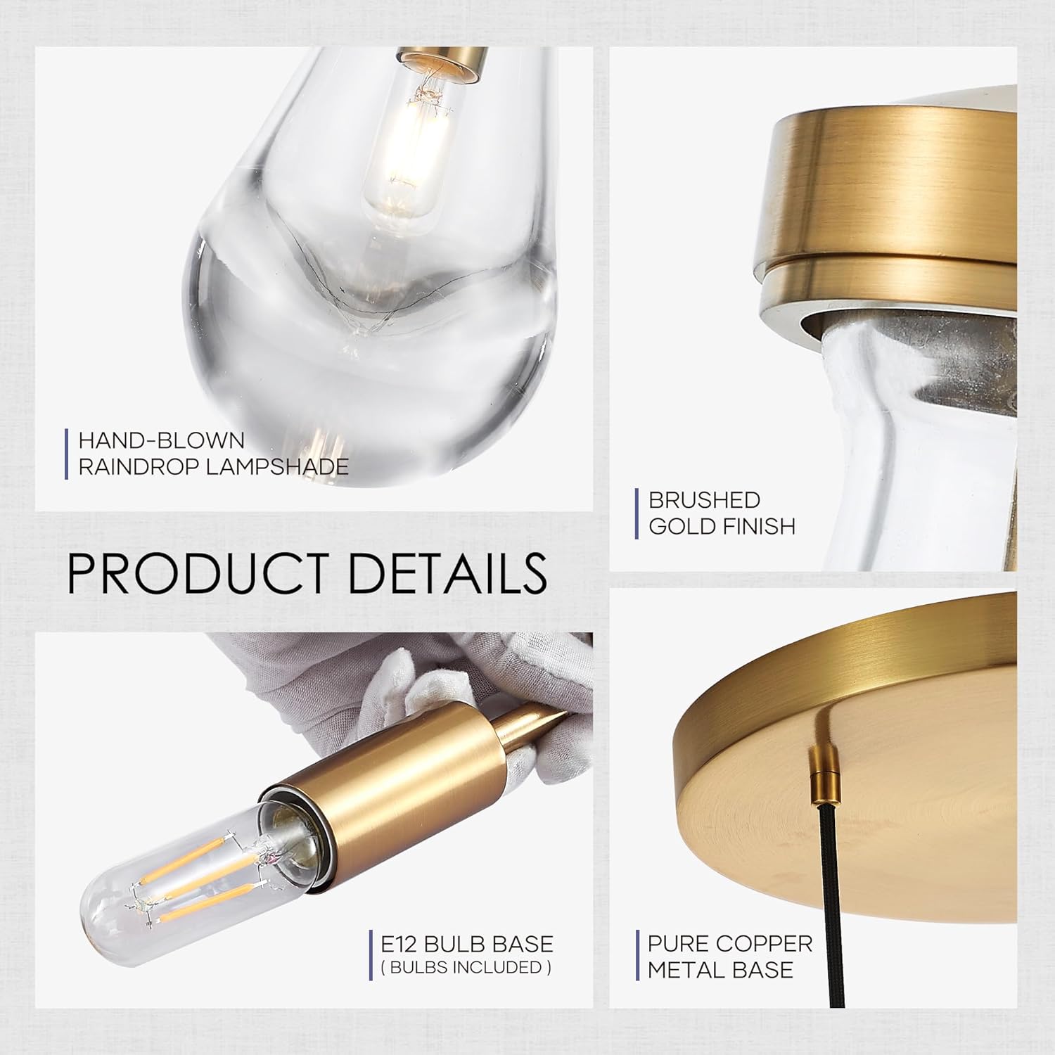 - 【Raindrop Design】This raindrop pendant light features a unique and captivating design that combines modernity with the beauty of nature. The handmade, mouth-blown glass shade resembles raindrops, creating a stunning light effect that enhances any space. Whether you prefer a modern or vintage farmhouse style, these pendant lights effortlessly blend in while illuminating your room with a bright and decorative ambiance.