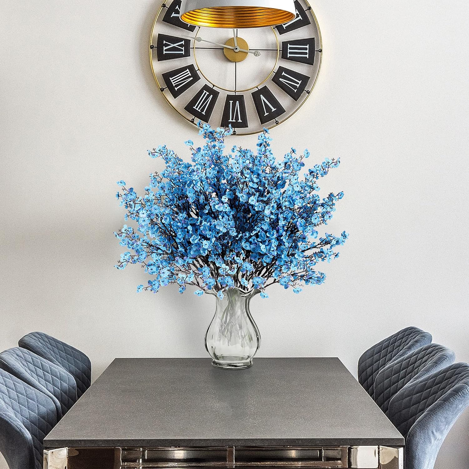 Sggvecsy 6 Pcs Babys Breath Artificial Flowers Gypsophila Bouquets Bulk Real Touch Fake Silk Flowers for Home Wedding DIY Floral Arrangement Kitchen Table Centerpiece Festival Decoration (Blue)