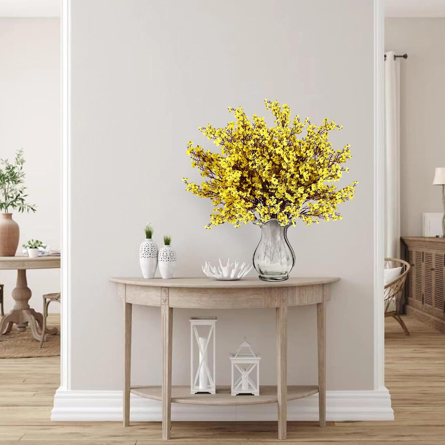Sggvecsy 10 Pcs Babys Breath Artificial Flowers Gypsophila Bouquets Bulk Real Touch Fake Silk Flowers for Home Wedding DIY Floral Arrangement Kitchen Table Centerpiece Festival Decoration (Yellow)