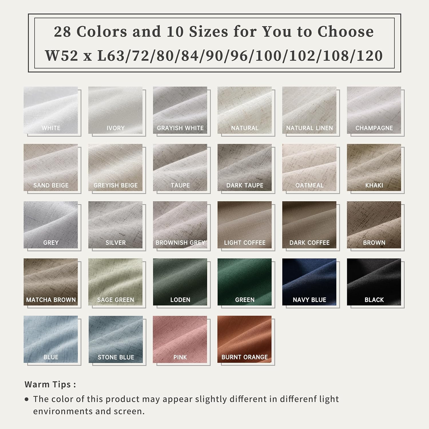 - 3 Hanging Options: Differ from the traditional curtains with grommet, BOODII linen curtains with back tab and rod pocket can full block sunlight fully. (1) Using the back tabs design to create an elegant pleated look and sit closer to the wall than traditional ring curtains, which helps to block out more sunlight; (2) Using rod pocket for a classic effect; (3) Using clip rings on track system or curtain rod, slide open/closed easily (clip rings are not included).