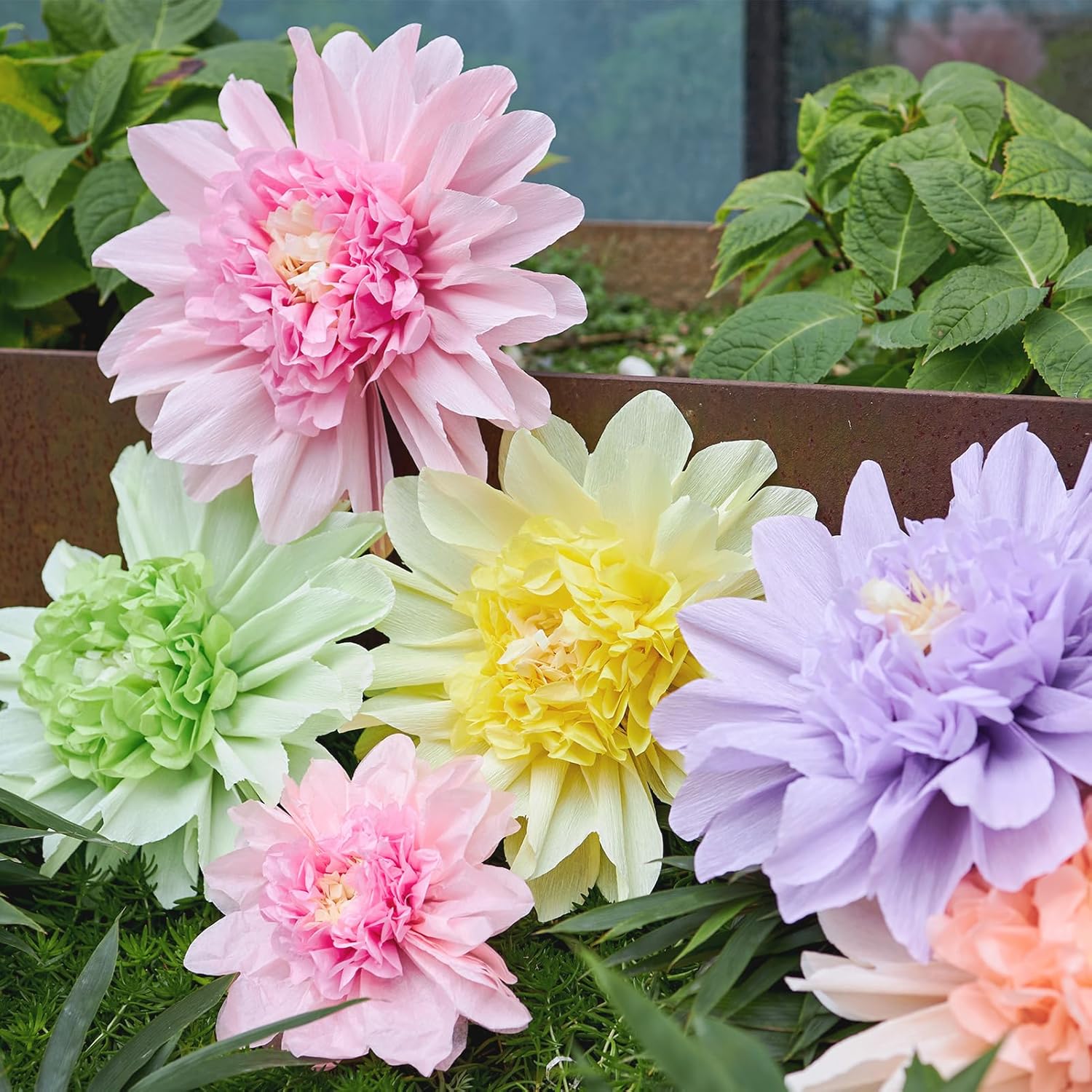 - Variety & Quality Materials - Includes 6 pieces of 12-inch flowers made of thick, textured crepe paper for added support and elegance, along with 6 delicate 6-inch flowers crafted from soft tissue paper for a balanced and versatile decor set.