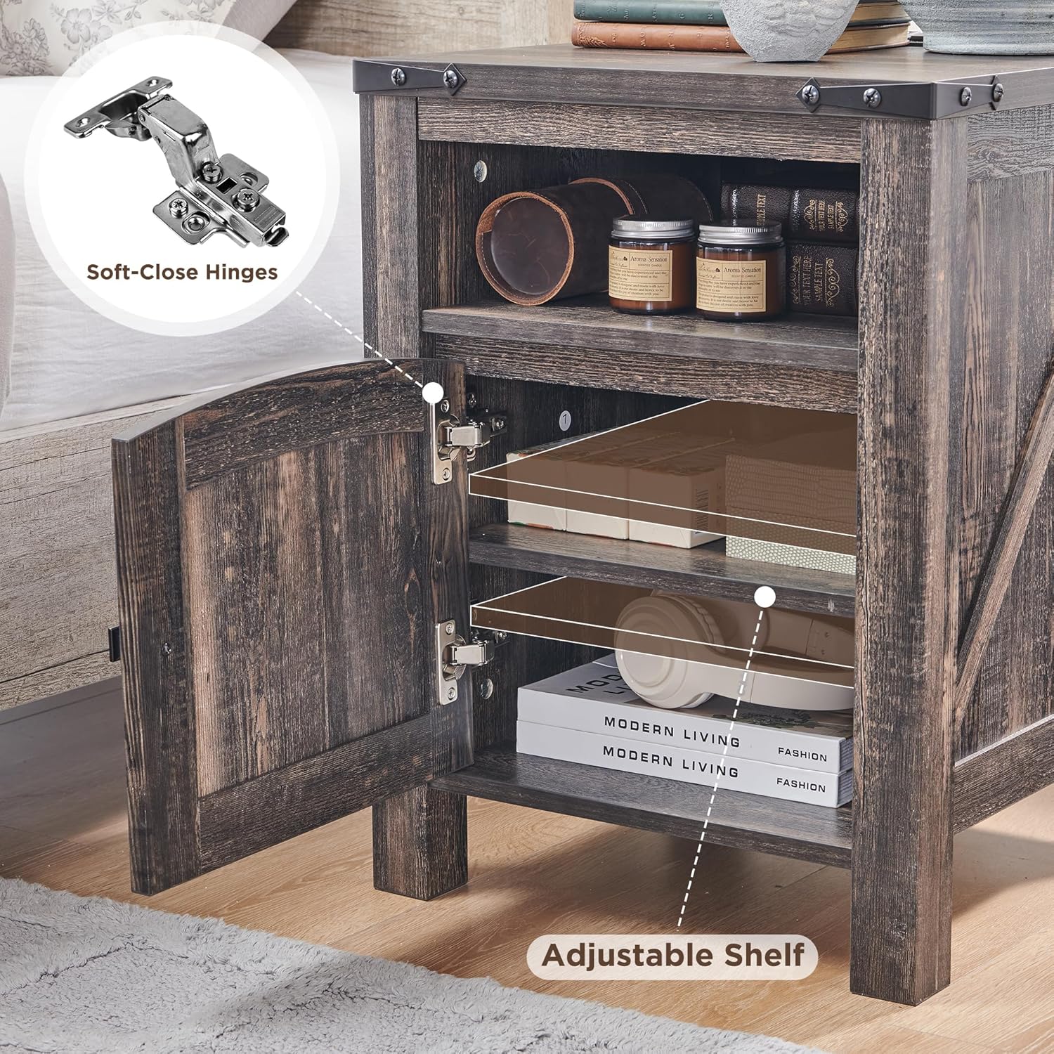OKD Farmhouse Nightstand with Charging Station, 18" Rustic End Table with Adjustable Storage Shelf, Wood Rustic Wood Sofa Side Table for Bedroom