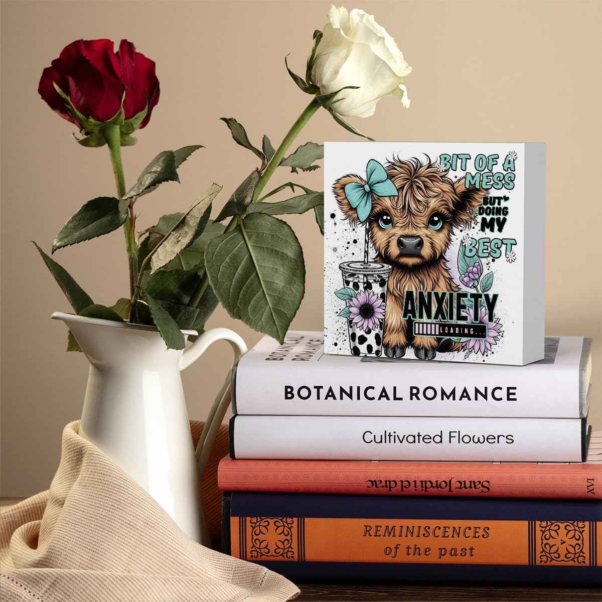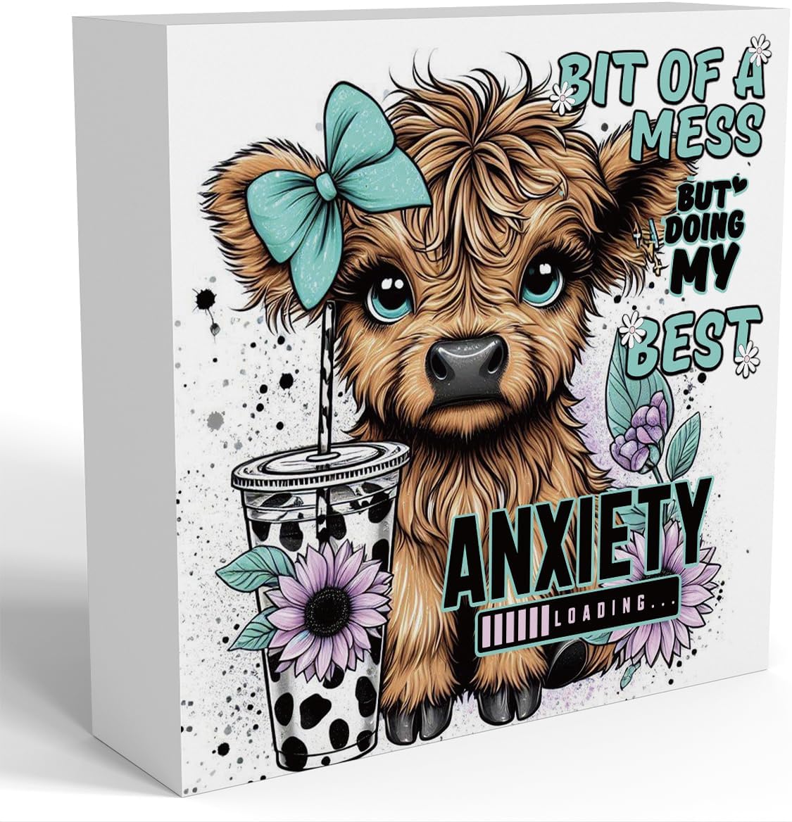 Highland Cow Western Sunflower Decor, Highland Cow Gifts for women, Highland Cow Baby Decor, Highland Cow Nursery Decor, Wooden Box Decor Sign for Home Farmhouse Office Living Room Table Shelf Tiered