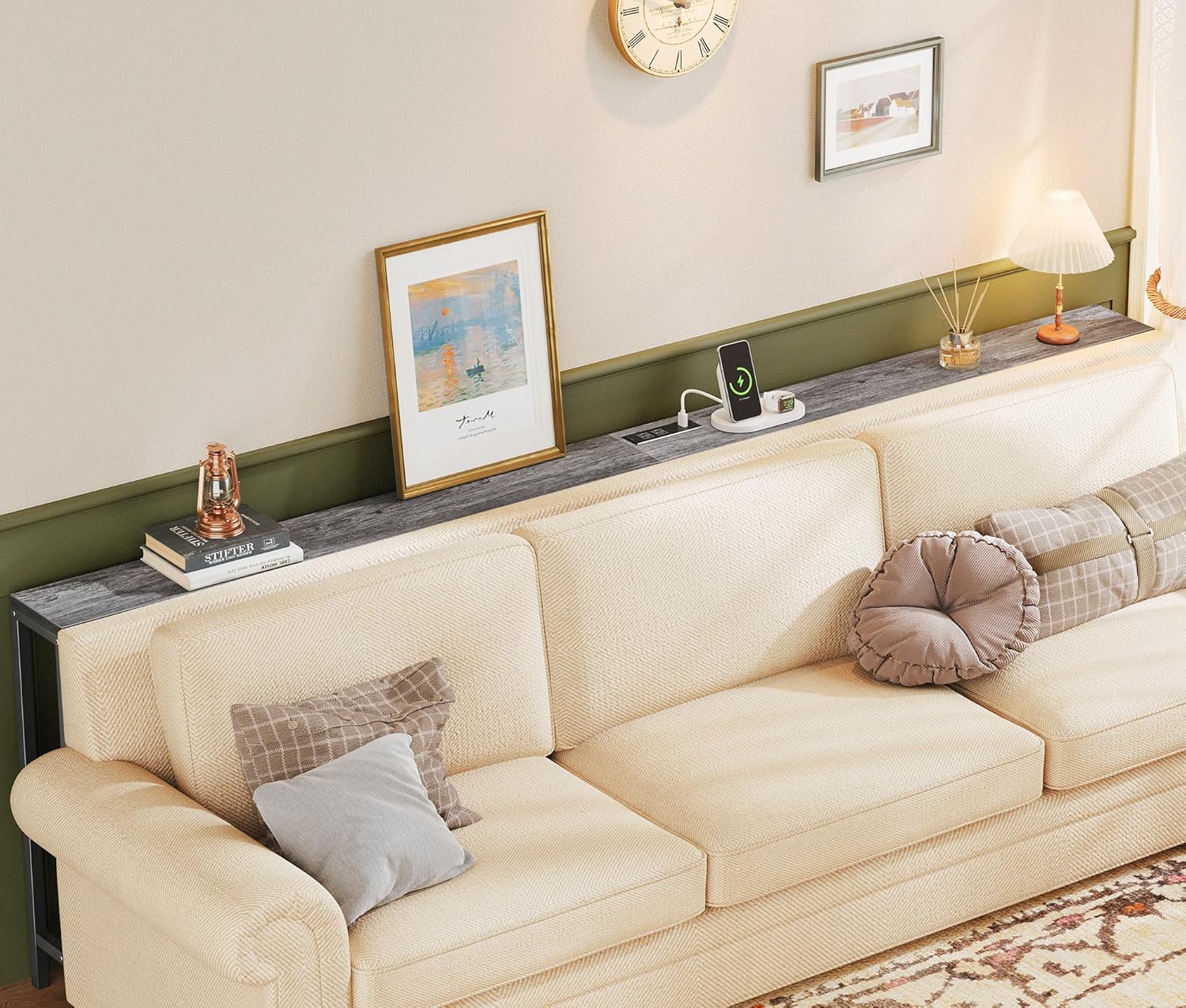 - [Welcome Power Outlets]: Invite this console table with storage to facilitate your charging time. 2 outlets, 1 USB Port and 1 Type-C port are totally enough for your charging needs. Lamps, phones, iPad, fans, and even decorative light strings are all covered