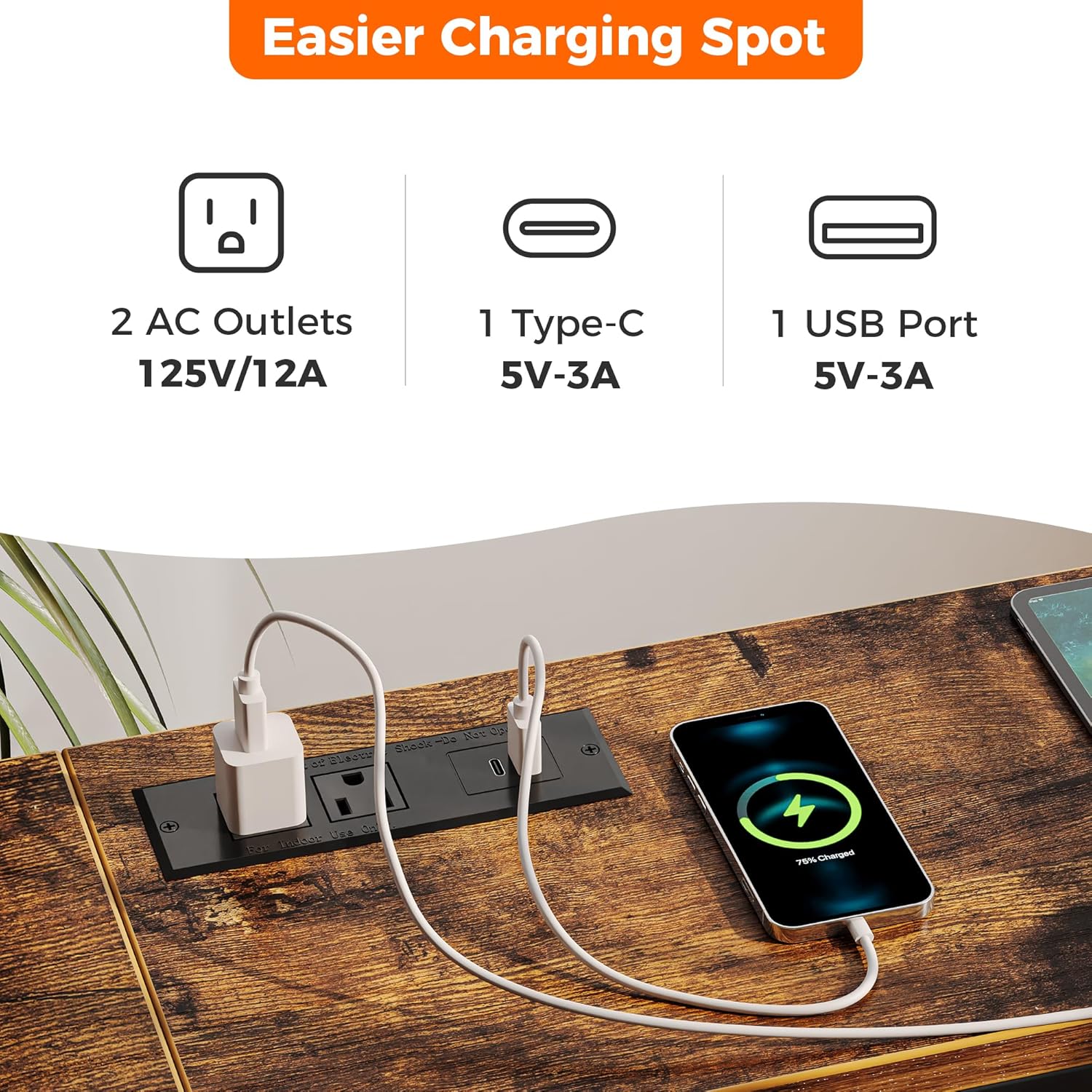 - [Welcome Power Outlets]: Invite this narrow console table to inspire your life! 2 outlets, 1 USB Port and 1 Type-C port are totally enough for your charging needs. Lamps, phones, iPad, fans, even decorative light strings are all covered