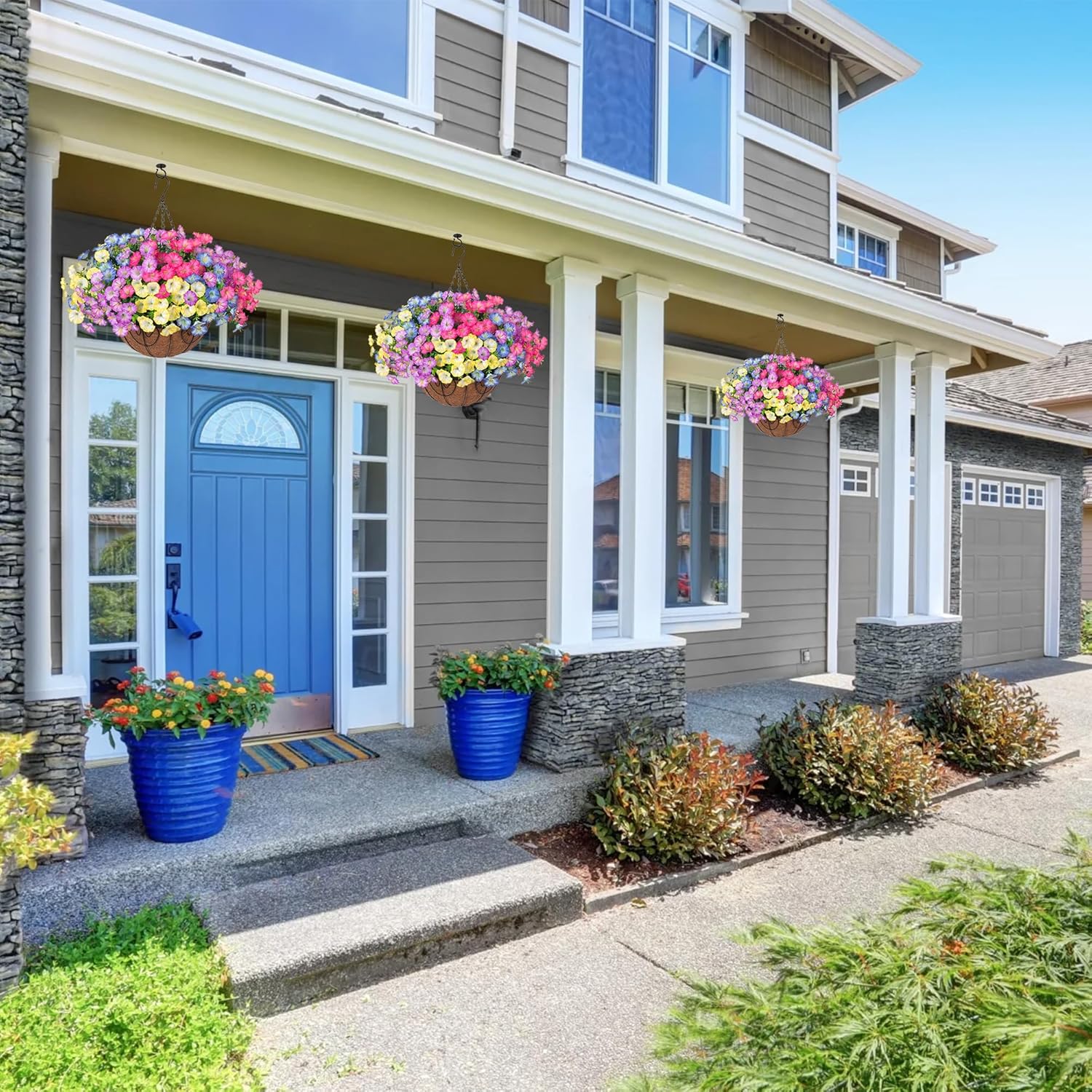 - š¢ All-Occasion Decoration: These artificial outdoor hanging flowers basket are perfect for garden, porch, patio, balcony, yard, home, front door, and outside decoration. These artificial hanging flowers with a basket provide the beauty of real flowers without the need for maintenance.