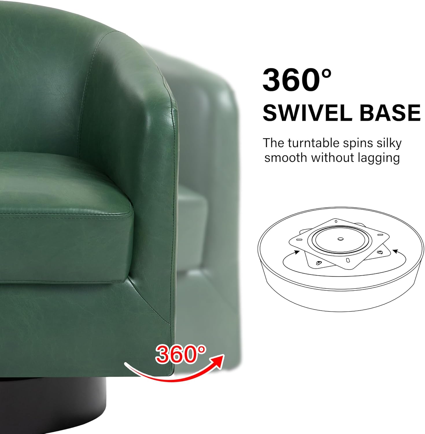 - 360 Degree Swivel Barrel Chair: This 360 degree round swivel chair designed for your leisure comfort. Heavy solid turntable, making it more stable and not wobbly
