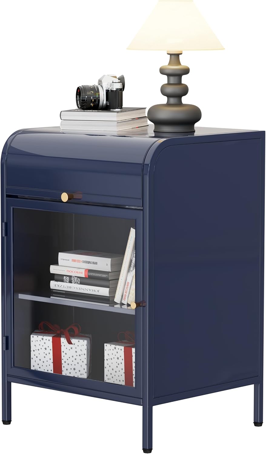 - Stylish Glass Door:Enhance your bedroom decor with our nightstand's chic design. The transparent glass door adds a unique artistic touch, while the metal frame features a sleek matte finish, effortlessly matching any room style. It combines modern and mid century element makes the room look more stylish