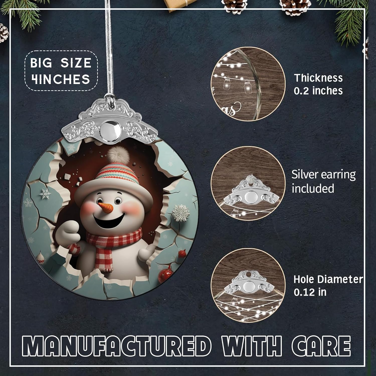 2025 Christmas Ornament, Christmas Tree 4 Inch Acrylic Ornament Art, Christmas Ornaments, Ornaments, Christmas Tree Ornaments, Ornaments for Tree (Cute Snowman)