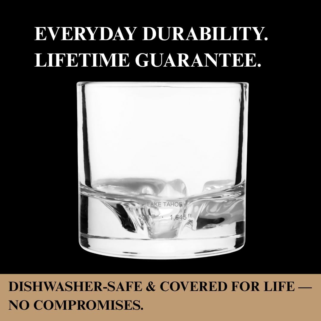 - SCALE REPLICA OF LAKE TAHOE: Each crystal whiskey glass features an accurate 3D replica of Lake Tahoe’s breathtaking terrain. Swirl your drink and watch as it gently aerates, naturally enhancing the flavors of bourbon, scotch, tequila, vodka, or cocktails.