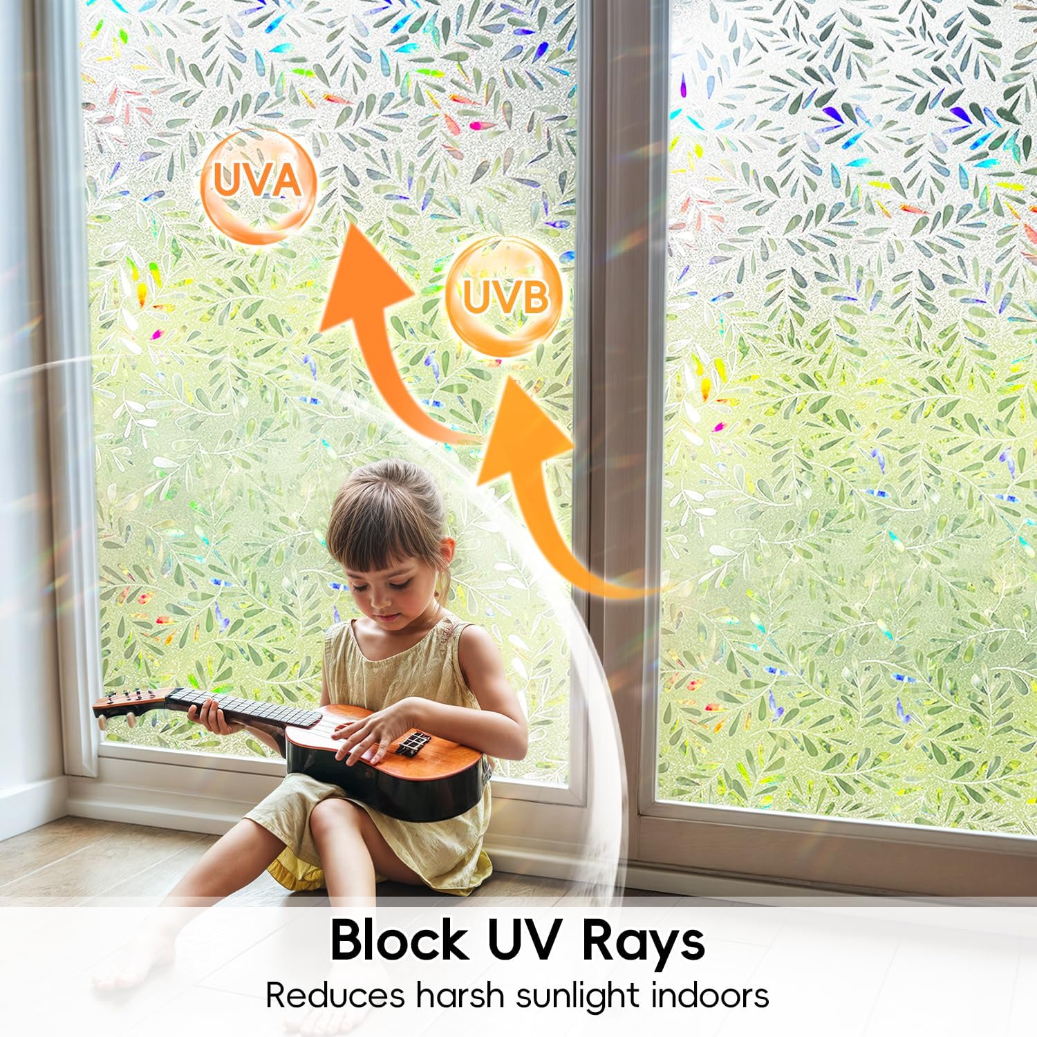 - UV Protection: This frosted glass window film blocks up to 96% of UV rays, reducing the harshness of direct sunlight. It also helps protect your furniture by minimizing fading and aging caused by UV exposure, preserving the look of your floors and furnishings