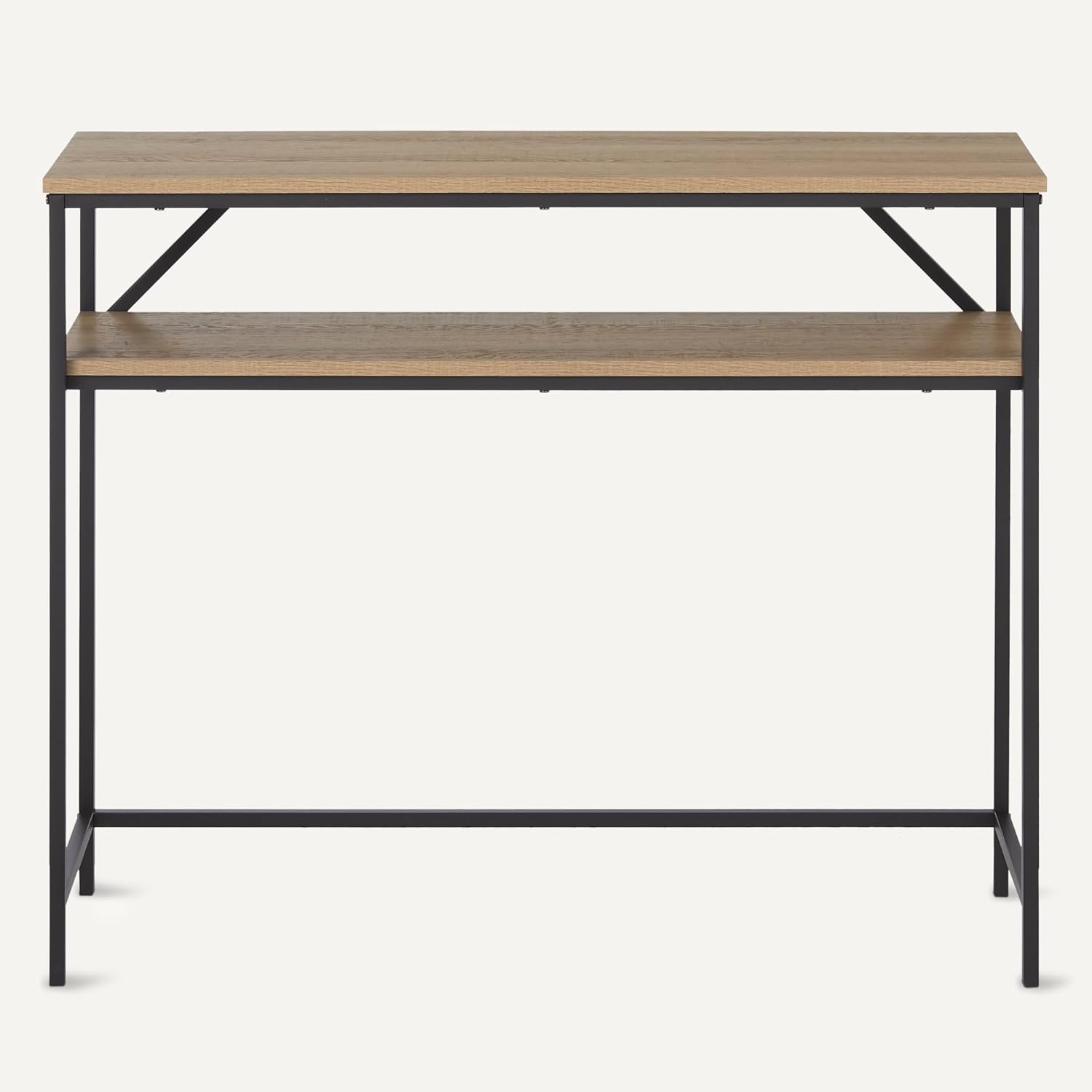 Amazon Basics Rectangular Console Table with Storage Shelf, Steel Frame, 39x31x11.8 in, Oak Finish