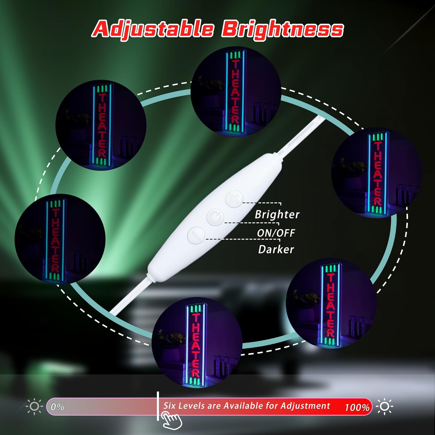 - Versatile Decor Option:Beyond home theaters, our Theater Neon Sign adds a dramatic flair to bars, restaurants, or any commercial space looking to evoke the glamour of the silver screen. It's also an ideal gift for film buffs, theater owners, or anyone who loves a touch of retro style.