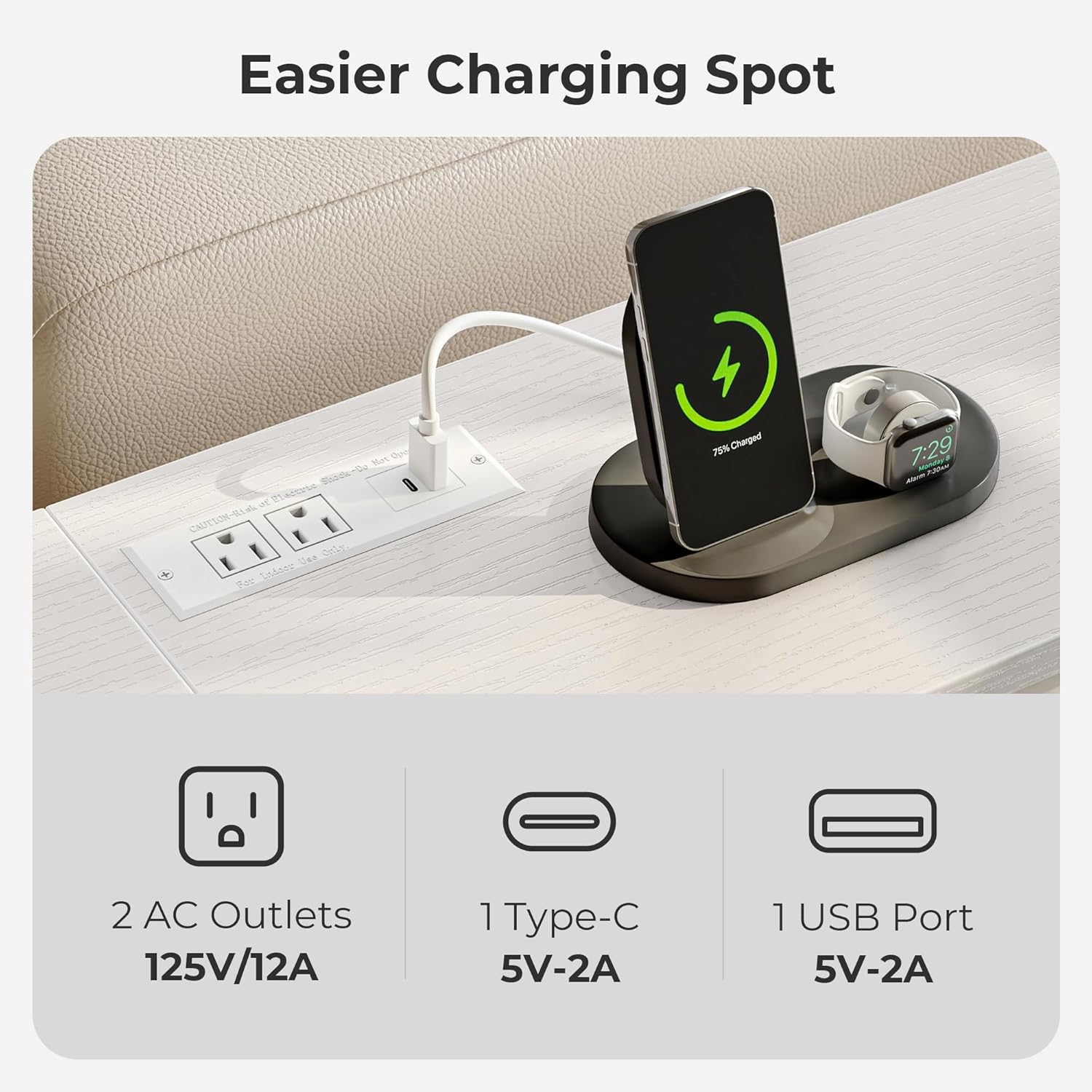 - ăMultiple Sofa back Charging OptionsăNo more diving behind the sofa for an outlet! This sofa table features 2 AC outlets, 1 USB, and 1 USB-C port, perfect for charging your phone, lamp, speaker, or laptop right where you need it, whether behind your couch, in the hallway, or by the entry