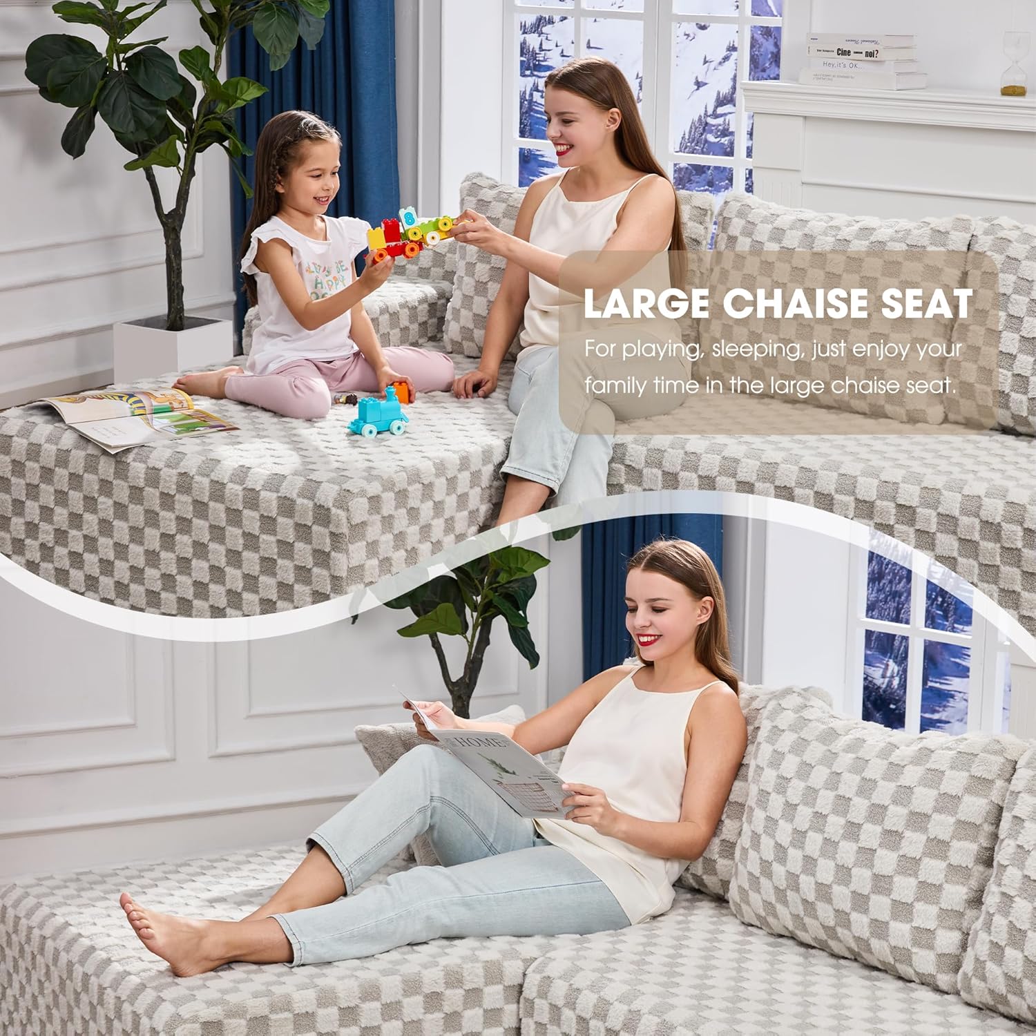 Hobestluk 96“ Modular Sectional Sofa Couches L-Shape Couch 3 Seat Modular Sofa Sectional Couches for Living Room, Cloud Couch with Oversized Chaise (Greygreen, Checked (Left Facing Chaise))