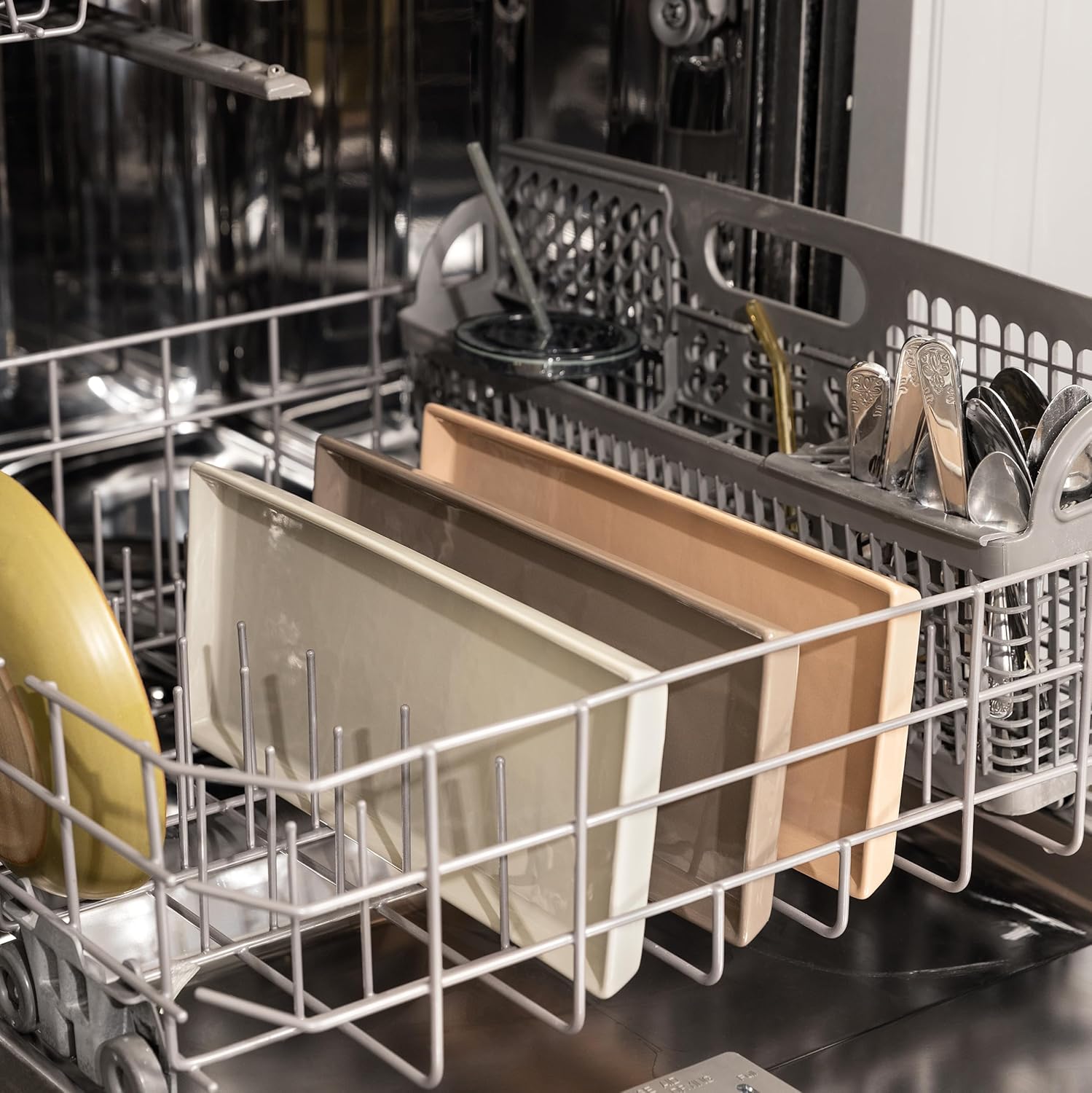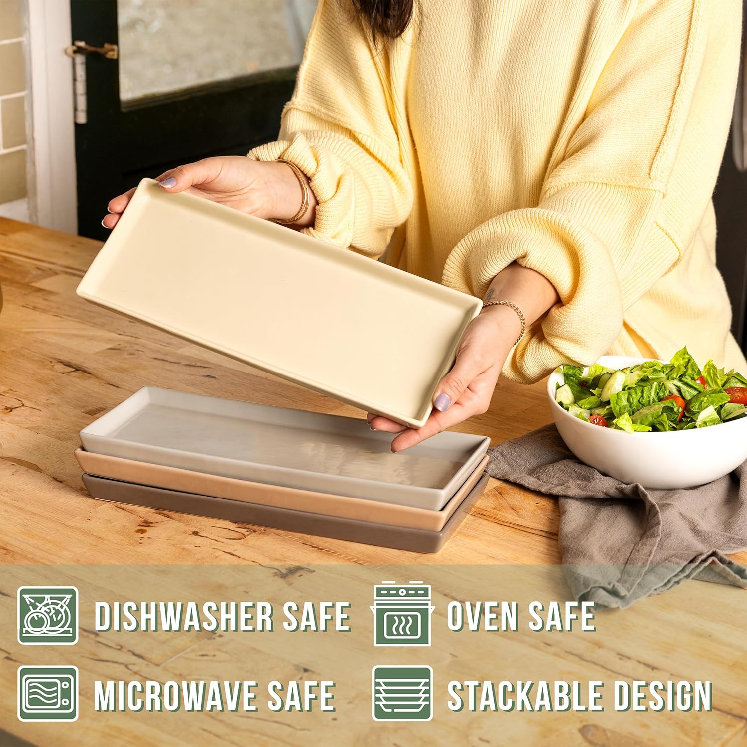 - Set of 4 Ceramic Trays β Uniquely and beautifully designed rectangular ceramic serving trays that are great for any occasion; Beautiful neutral colors will match any of your homeβs decor; Each dish is 14β x 6β
