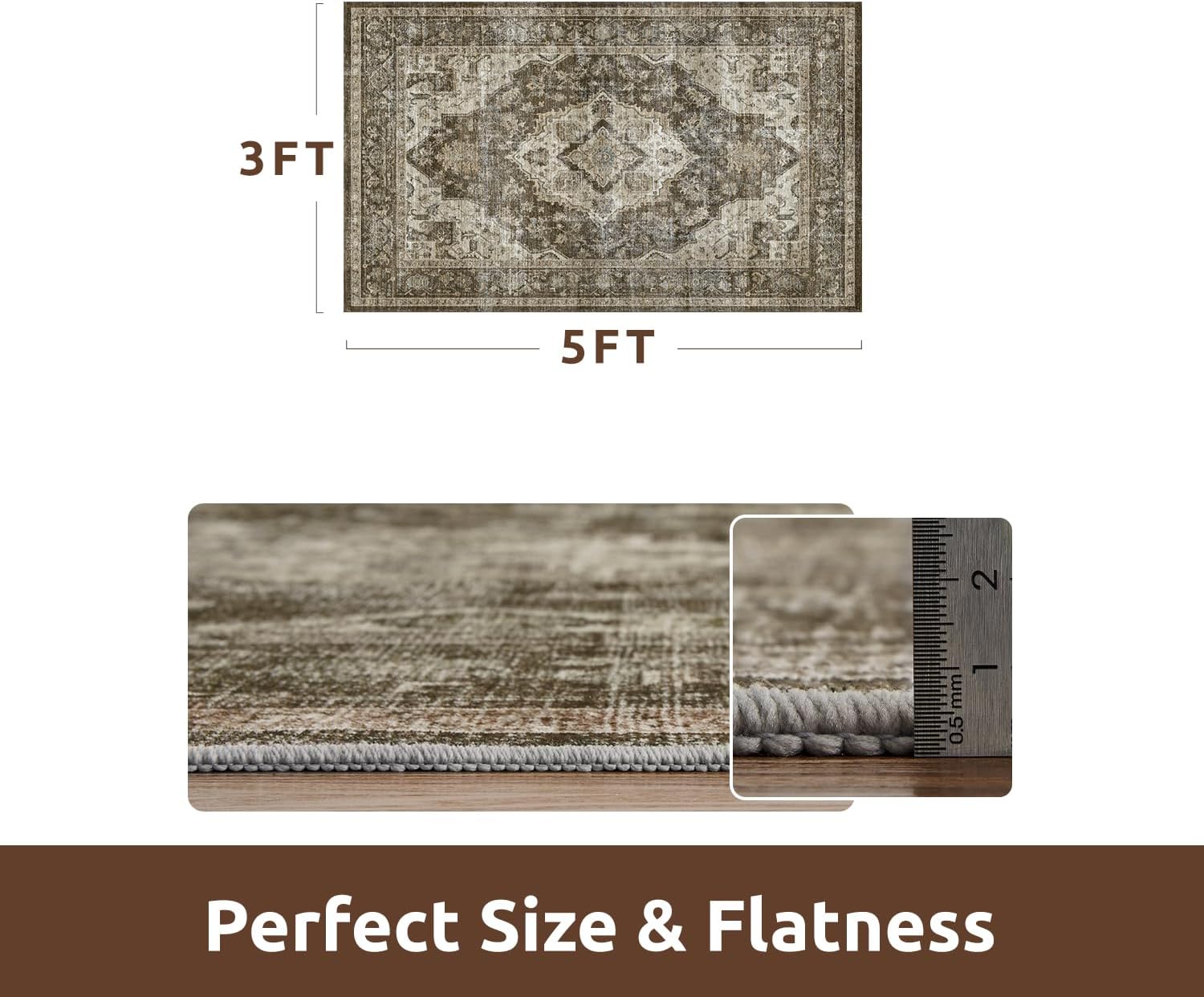 AMOAMI-3X5 Area Rug-Soft Washable Vintage Throw Accent Rugs for Living Room, Entryway, Bedroom, Kitchen, Bathroom, Laundry Room, Kitchen, Bathroom, Bedside, No Slip Brown/Coffee