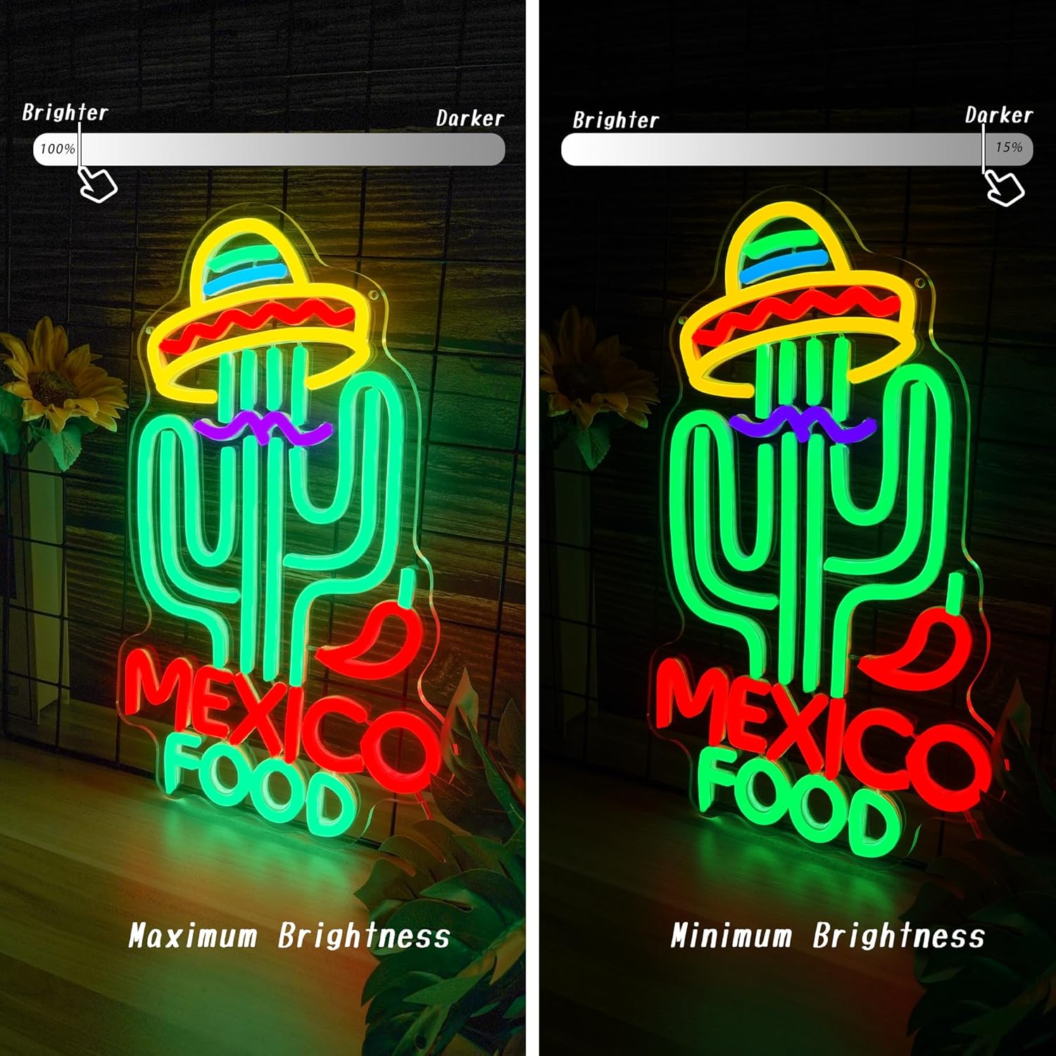 Mexican Food Neon Sign Cactus Neon Lights Dimable Colorful LED Mexican Art Lights Wall Decor for Mexican Restaurants Bars Food Trucks Unique Gift for Taco Enthusiasts Fiesta Parties (15×9.1inch)
