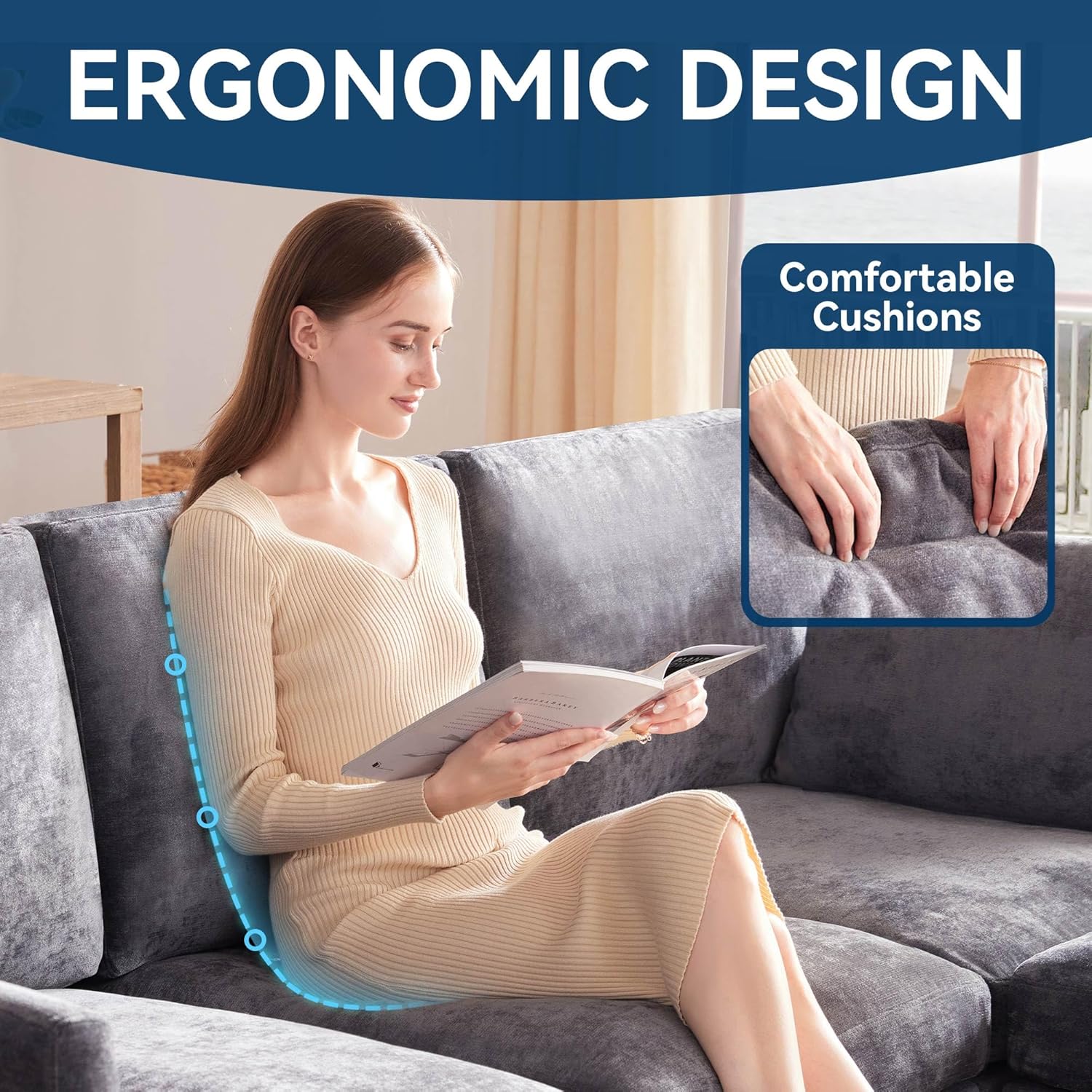 - Cloud-Like Comfort - Crafted with high-density foam and quality springs, this cloud couch delivers adaptive support, prevents sagging while maintaining shape. Enjoy balanced softness, pressure relief, and long-lasting durability—ideal for your living room. Relax in ultimate comfort!