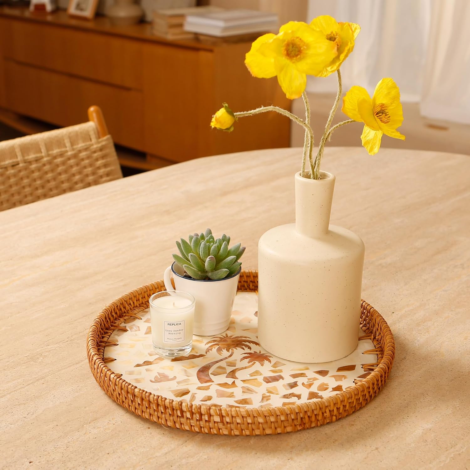 - Versatile for Multiple Settings: Perfect for use in the dining room, living room, kitchen, and more. It can serve as a coffee tray, bread plate, fruit platter, or a holder for scented candles, keys, remotes, and other small items, seamlessly blending into your daily life