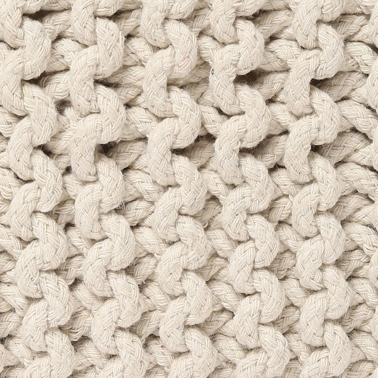 - HANDMADE FROM THE FINEST MATERIALS: The outer material on this eye-catching pouf ottoman is made from 100% cotton chord knitted in a unique pattern and filled with thermocol block inserts. Each floor pouf measures 16x16x8 inches and is handmade by our talented in-house artisans. This floor pouf is perfect when you need to rest your leg