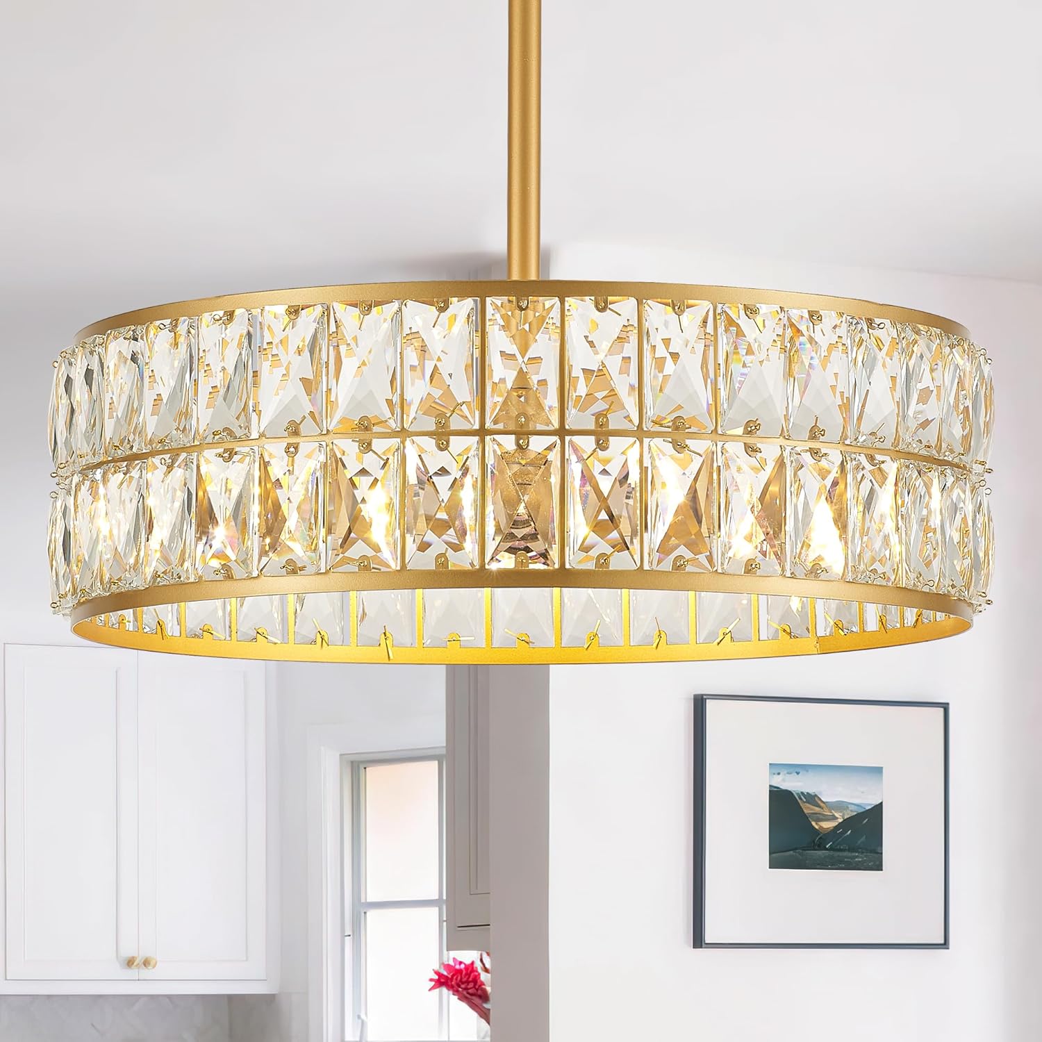 16” 4-Light Modern Crystal Chandeliers Gold Dinning Room Light Fixture, Round Pendant Light Kitchen Island Chandelier, Flush Mount Ceiling Light for Living Room Entryway Bedroom Foyer