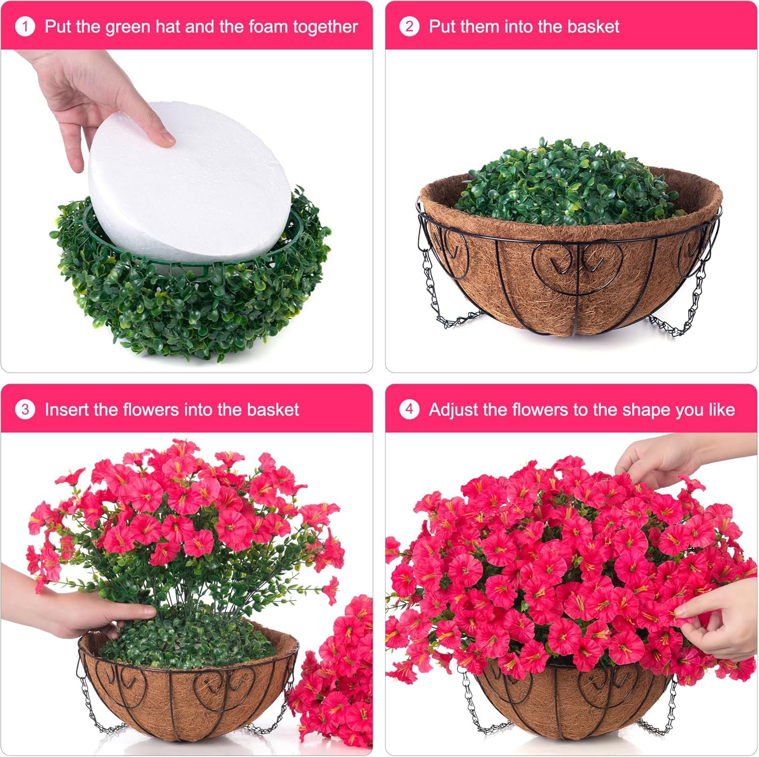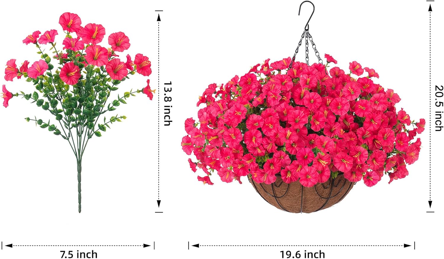 - š¢ Artificial Hanging Morning Glory Flowers Basket: Package include 12 bundles Realistic silk morning glory match with green eucalyptus leaves, 1 Hanging Basket with chain, 1 foam, 1 green hat. Enjoy vibrant blooms year-round, regardless of the season or weather conditions.