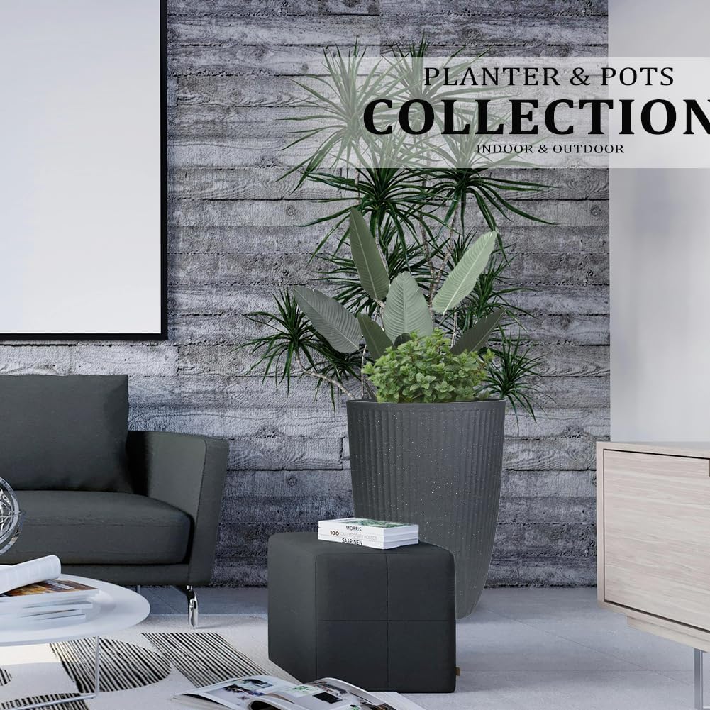 2 Pcs Pack 15 Inches Heavy Duty Plastic Resin Tall Tapered Planter Pots Large Round Planter Flower Pot with Drainage Hole for Indoor Outdoor Deck Porch Garden Home Patio Front Door (Dark grey, S)