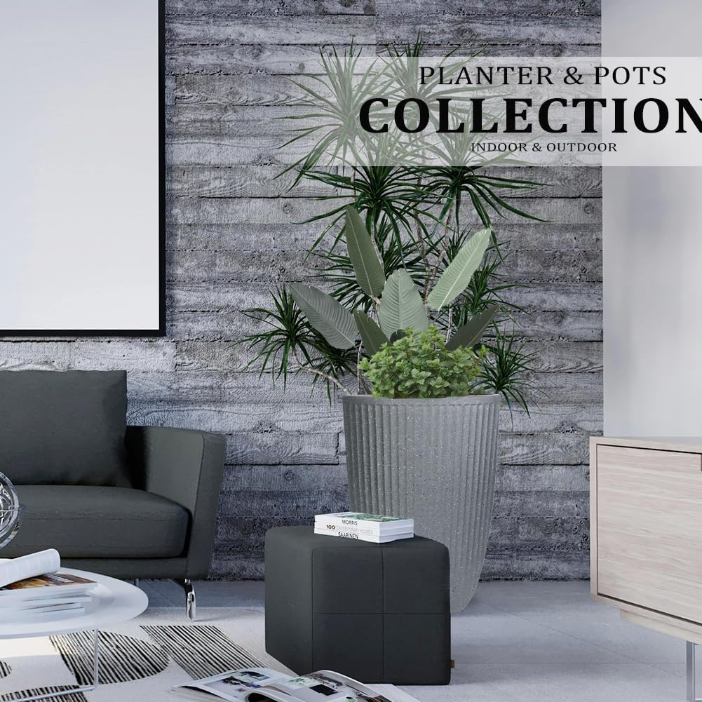 - VERTICAL STRIPES DESIGN β The special modern and stylish design of these tall square planter flower boxes is super for large outdoor and indoor plants, herbs and flowers at home, office, hotel, resrestaurants etc. Ideal for any front entrance, poolside, patio, or spacious hallway, porch, deck, backyard