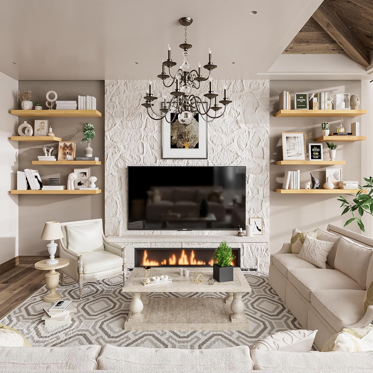 - Extra Deep Floating Shelves: Measuring 11.6” D x 23.6” W x 1.5” H, these shelves are crafted for maximum depth and durability. The spacious 12” depth gives you plenty of room for stylish display, organized storage, and decorative accents. Perfectly suited for your bathroom, kitchen, or living room, they enhance both function and flair in any space!