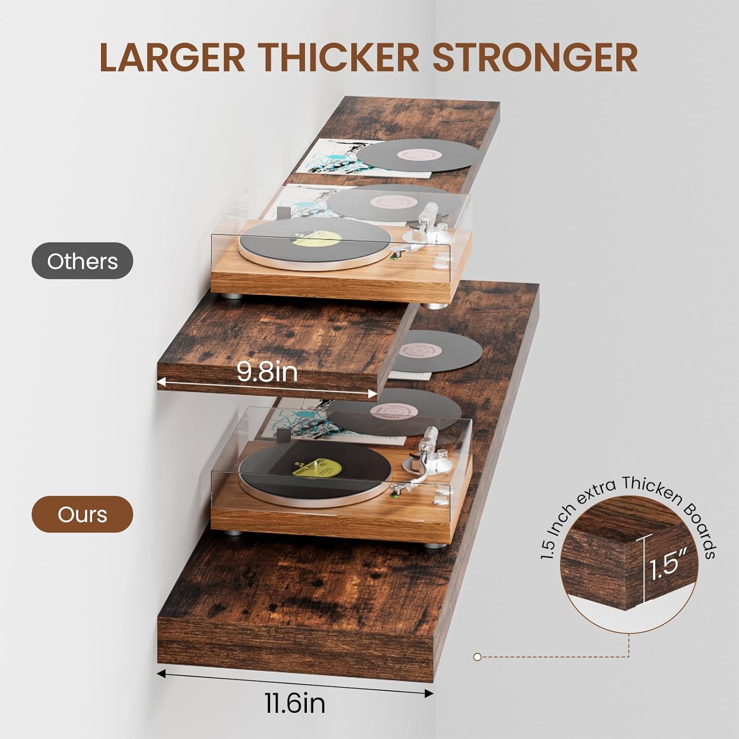 - Easy Installation: Comes with all the mounting hardware and detailed instructions, easy to install within 10 minutes. Thicken & strong metal brackets provide excellent support, keeping the floating shelves sturdy against the wall without sagging. The pre-drilled holes allow for secure attachment of boards to brackets, ensuring a reliable display.